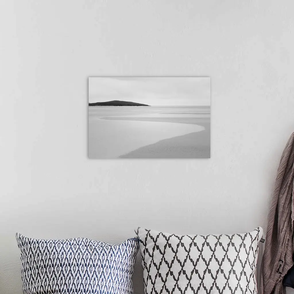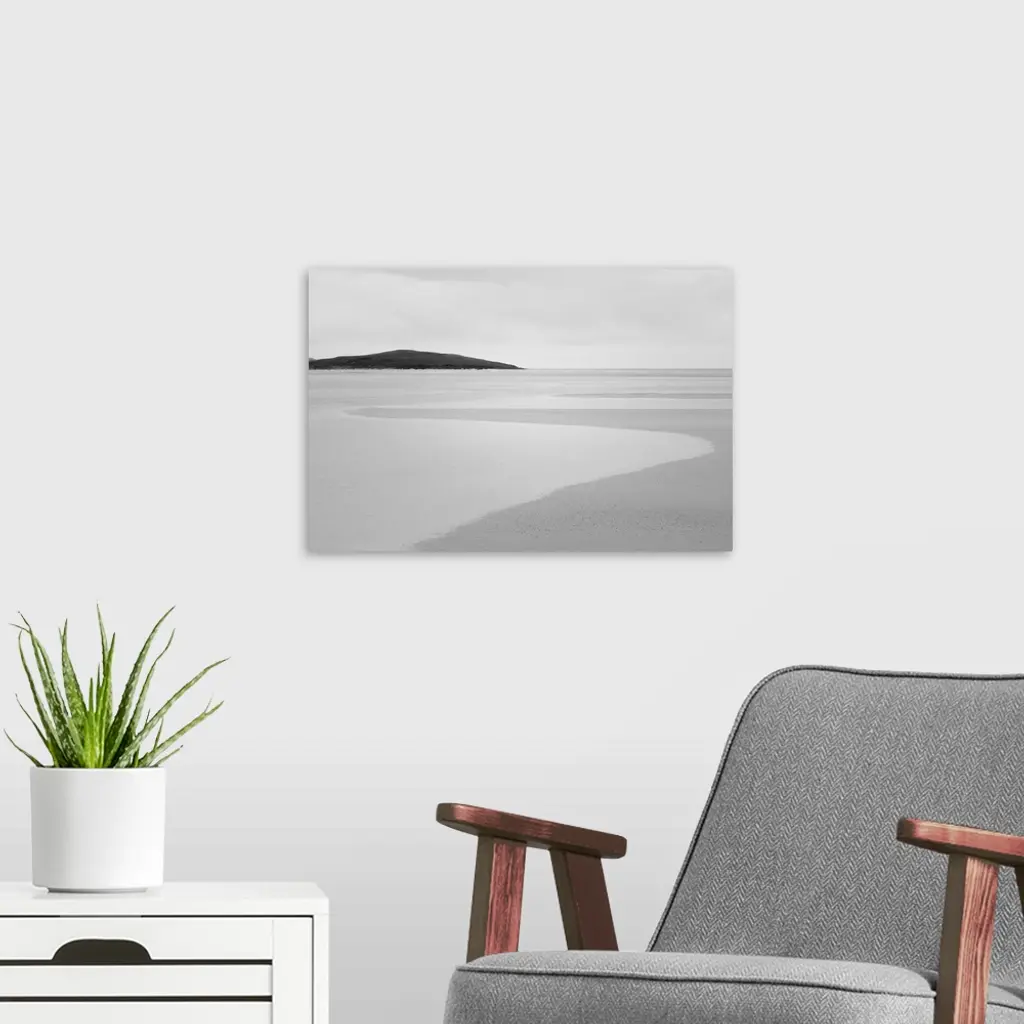 Black and white photograph of Luskentyre sands in Scotland.