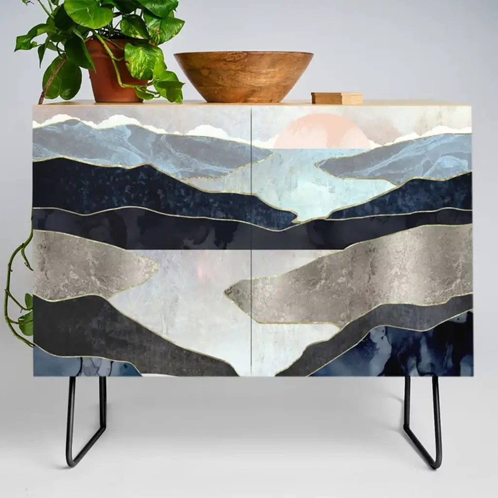 Calm But Dramatic Light Monochromatic Black & Grey Abstract Credenza