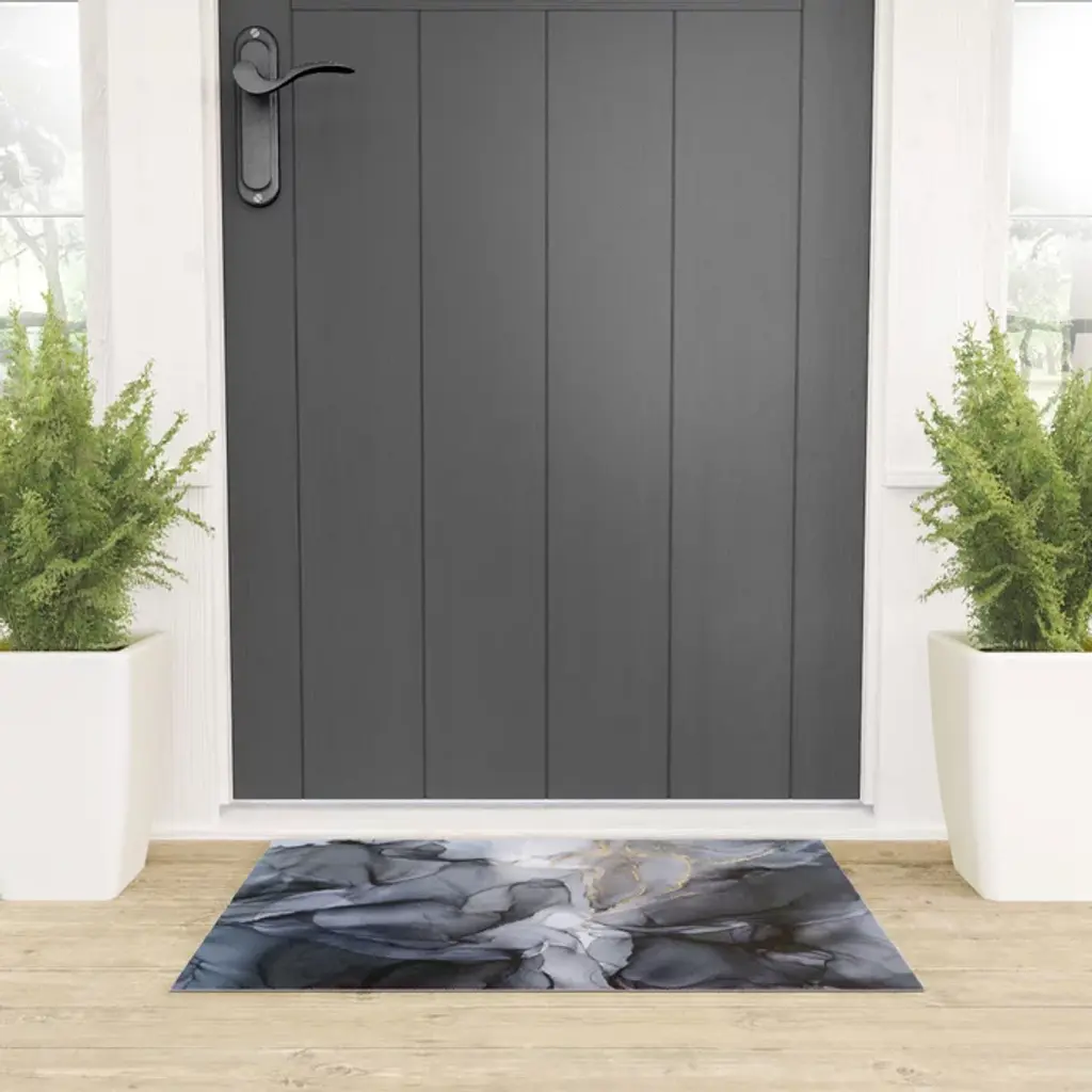 Calm But Dramatic Light Monochromatic Black & Grey Abstract Welcome Mat