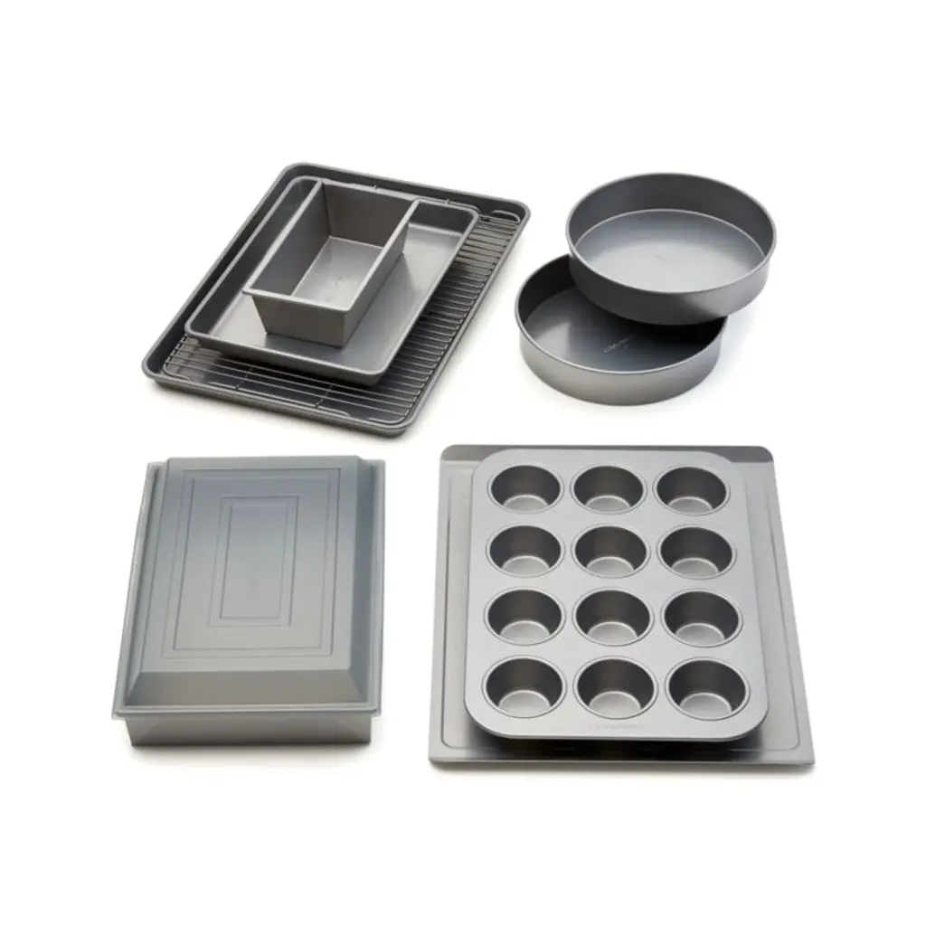Enjoy perfect release and beautiful results with nonstick bakeware from Calphalon. Each baking sheet and pan in the set has a steel core for even heat distribution and durable interlocking nonstick layers for easy food release.View all Calphalon products