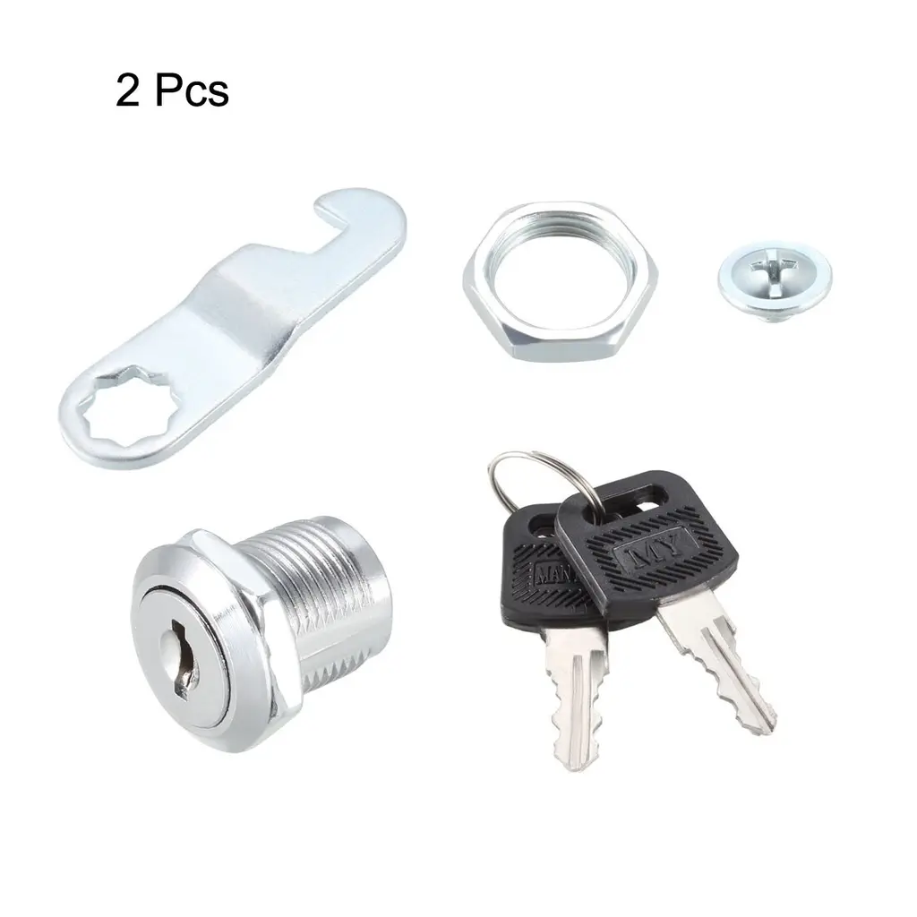 Specifications:Key Type: Keyed AlikeCylinder Length: 20mm / 0.79-inchCylinder Diameter: 17.5mm / 0.69-inchThreaded Part Length: 16mm / 0.63-inchHead Diameter: 22.5mm / 0.89-inchCam Size: 39 x 2mm / 1.54-inch x 0.08-inch (L*T)Material: Zinc Alloy, Chrome PlatedRotaion Degree: 90 Degree Package Contents: 2 x Cam Locks4 x Keys Descriptions:1. 20mm cylinder length, fits for mounting on panel thickness up to 1/2-inch.2. Zinc alloy and chrome finished will resist wear and rust over time.3. The cam lock is keyed alike, non-key retaining and 90 degree rotation.4. Perfect for cabinets, doors, lockers, mailboxes, RVs, boxes, etc.5. Each drawer and cabinet cam lock comes with 2 keys.