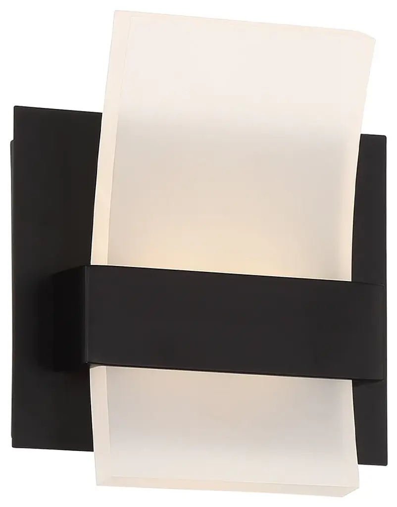 A frosted, curved acrylic prism is nestled in a black frame structure exuberating modern excellenceNumber of Lights: 1Bulb Type: LED IntegratedWattage: 7.5LED Color Temperature (K): 3000Dimmable: YesBulb Inlcuded: YesVoltage: 120Hardwire or Plugin: Hardwired