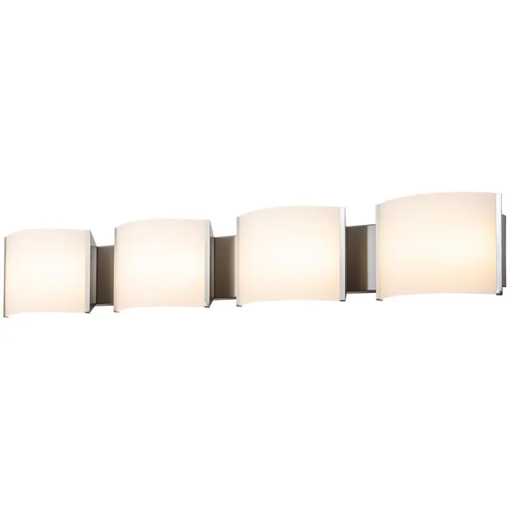 Patterned after Pittsburgh''s David L. Lawrence Convention Center roofline, the frosted acrylic panels are nestled in a frame structure. The bold lines accentuate modern excellence and a strong architectural form.Number of Lights: 4Bulb Type: LED IntegratedWattage: 30LED Color Temperature (K): 3000Dimmable: YesBulb Inlcuded: YesVoltage: 120Hardwire or Plugin: Hardwired