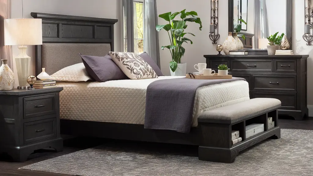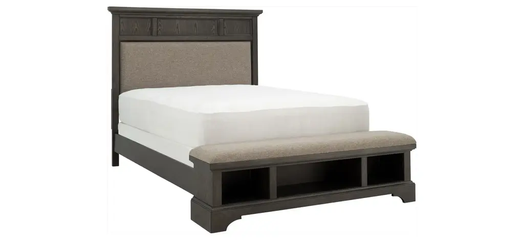 If you need storage, but don't want to sacrifice on style, then consider the Cambridge king 4-pc. bedroom set. With an upholstered headboard and upholstered bench-style footboard, this bed is different from anything you've even seen before. Plus, the footboard features 3 storage compartments to store extra blankets, sheets or pillows! Need more storage? No problem. The dresser has 7 drawers and the nightstand has 2 drawers.