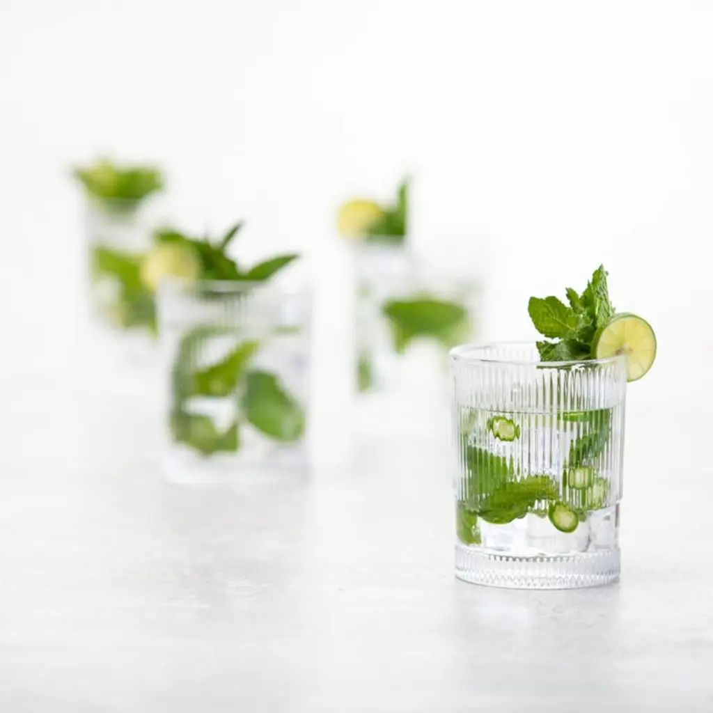 Camden's mix of smooth and fluted textures not only feels great in hand, it updates a barware staple with an eye-catching pattern and color. Molded with fine ribbing, the clear highball glass flickers shadows and highlights. For an on-trend update to your barware collection, mix and match the clear glass with its other colorful companions as well as the coordinating Camden double old-fashioned glasses.