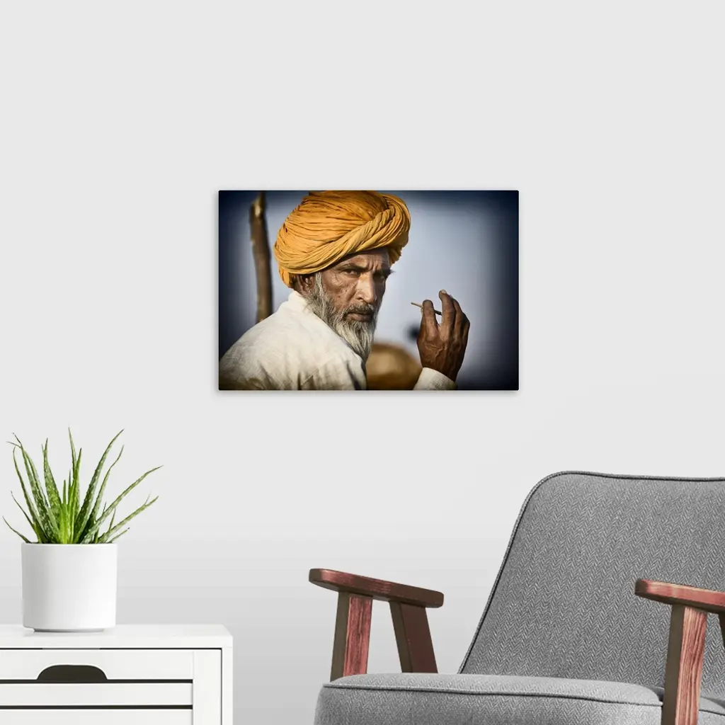 Camel owner with turbin in Pushkar, Rajistan, India wall art for home and office decor. Discover canvas art prints, photos, mural, big canvas art and framed wall art in GreatBigCanvas.com's varied collections.