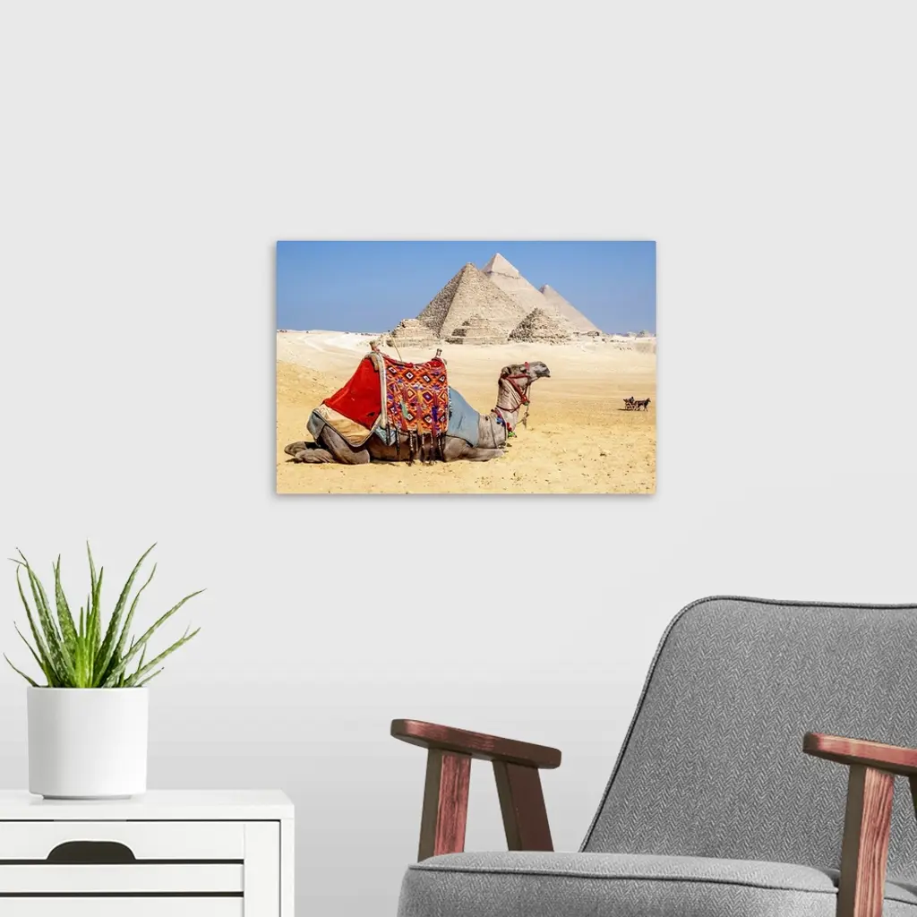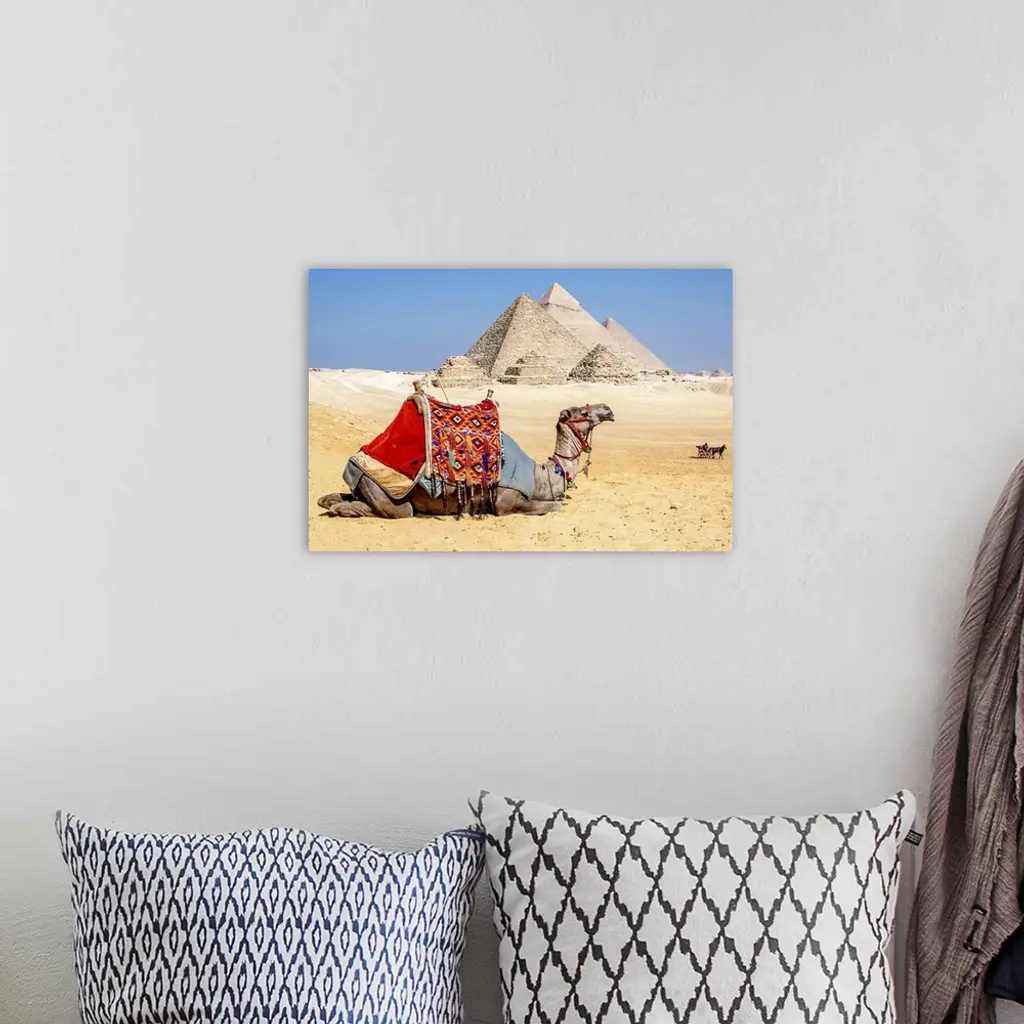 Camel Resting By The Pyramids, Giza, Egypt wall art for home and office decor. Discover canvas art prints, photos, mural, big canvas art and framed wall art in GreatBigCanvas.com's varied collections.