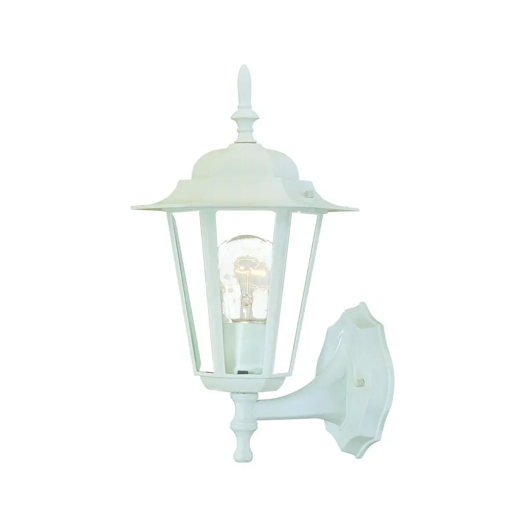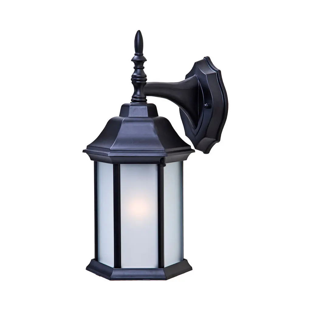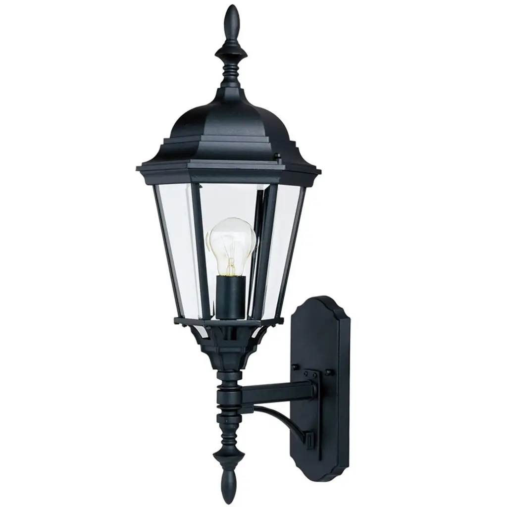 The Camelot collection 1-light wall-mounted lantern is made of cast aluminum. This material is a good choice for exterior lighting since it does not rust and resists corrosion. Complementing its clean design, this lantern features clear beveled glass panes.