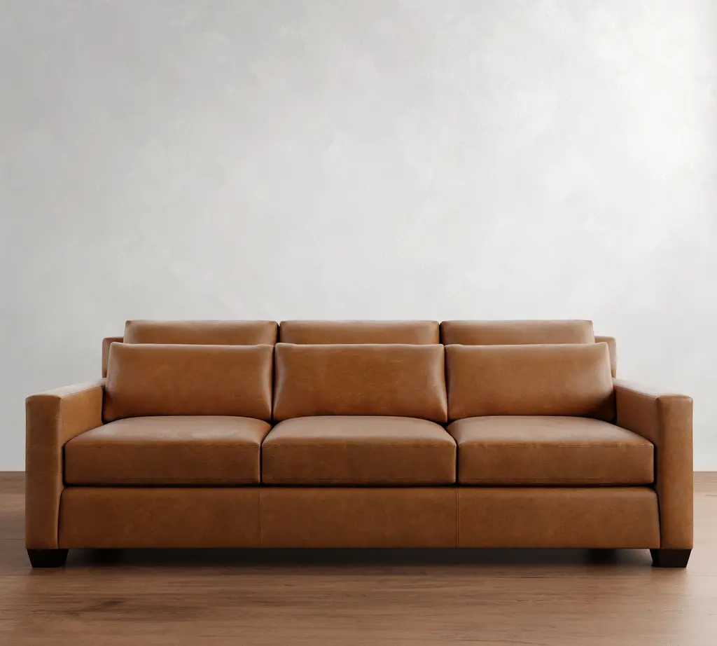 With its classic design, slope arms and plush seat cushions, our Cameron Leather Sofa brings lounging comfort to your home. Expertly crafted, this collection offers superb quality and customizing options at an unparalleled value.