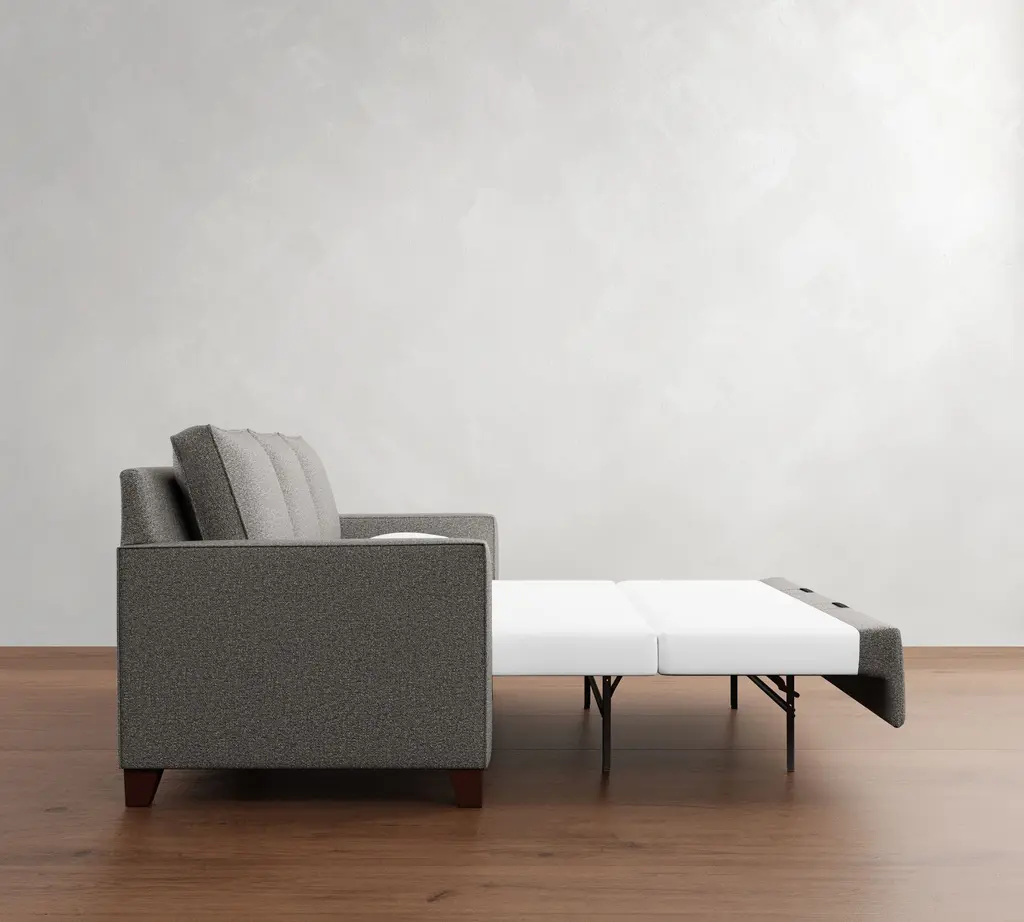 Our Cameron Collection is expertly built for superb comfort. It’s designed with a slimmer profile, making it an ideal choice for smaller spaces. The deluxe sleeper sofa features an extra-long plush mattress and an innovative design that saves floor space.