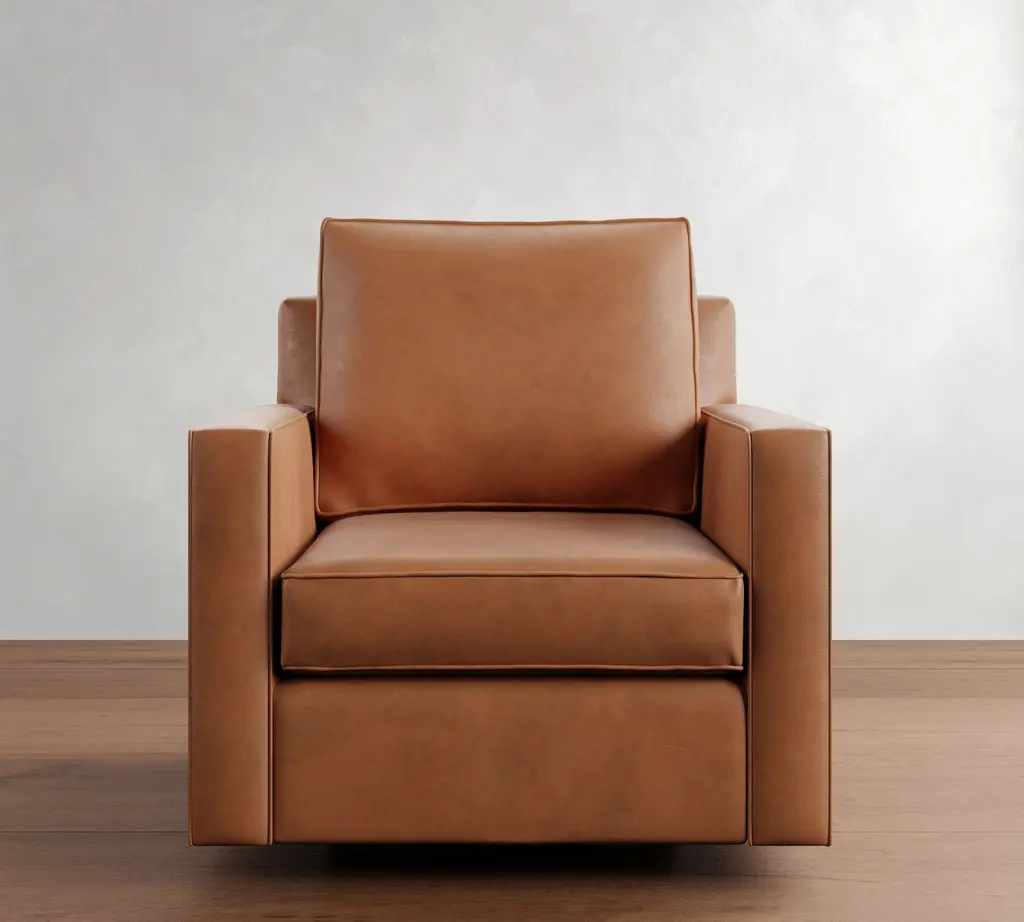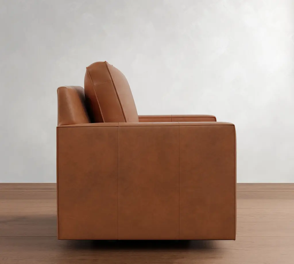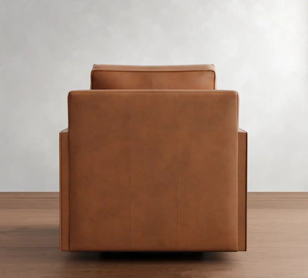 The enduring style of our Cameron Collection offers a luxurious spot for lounging. Generously padded arms and plush seat cushions maximize comfort in a compact silhouette that accommodates smaller spaces. This swivel armchair is available in a choice of top-grain leathers to help you customize your seating area.