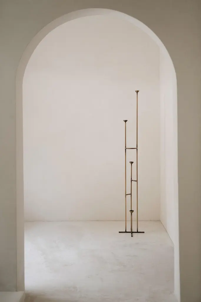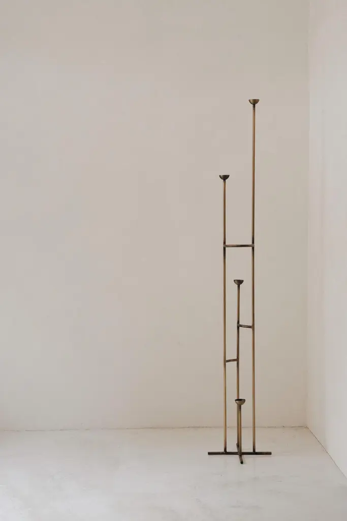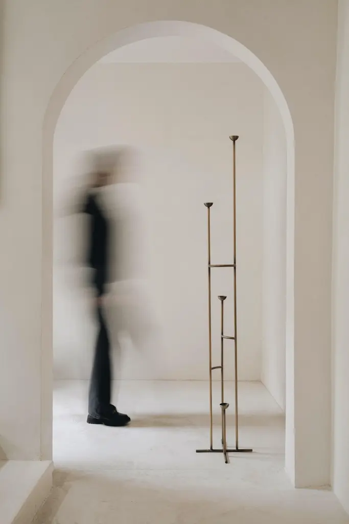 The transcendent character of decision making and its consequences, which are inflection points in everyday life, are concepts that are through the new collection by Sebastián Ángeles, on show at Zona Maco, the leading Contemporary Art fair in Latin America. In the ethereal realm of choices, where consequences dance like delicate whispers, we find ourselves mesmerized by the symphony of a butterfly's wings. With grace, it sets in motion a distant tempest, weaving a tapestry of destiny. Such is the enchanting theme that threads through this collection, a poetic embodiment of the holistic paradigm.Within the two pieces that compose the Camino collection, the allegory of decision-making and pivotal moments unfolds. They transform into structures that yearn to unveil the profound impact of even the most trivial choices upon life's grand tapestry. Ángeles, in this wondrous series, crafts two brass candle holders that explore the heights of luminance. With artistic precision, they intertwine, guided by harmonic lines that gracefully shift direction at the precipice of significance.Symbolism, the key to Ángeles' artistic essence, breathes life into these objects. Here, the paths that unfurl before us each day, brimming with potential, manifest as sturdy pillars and radiant beacons at their journey's end. The first piece emanates from a base shaped as a cross, as if a divine guide. Rising and falling, the cups symbolize the ebb and flow of desires, culminating in a zenith where wishes find fulfillment.