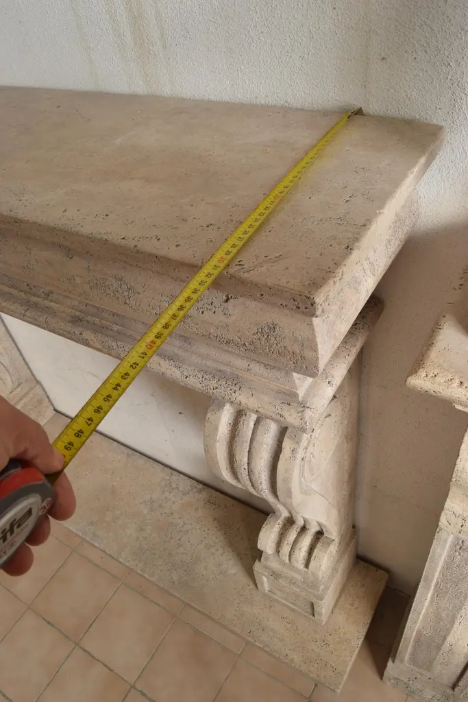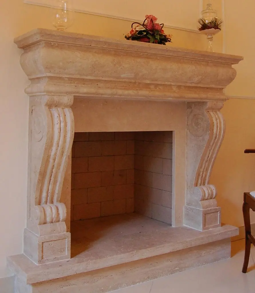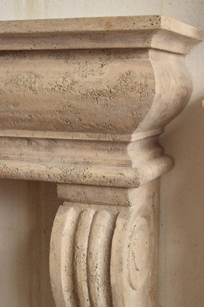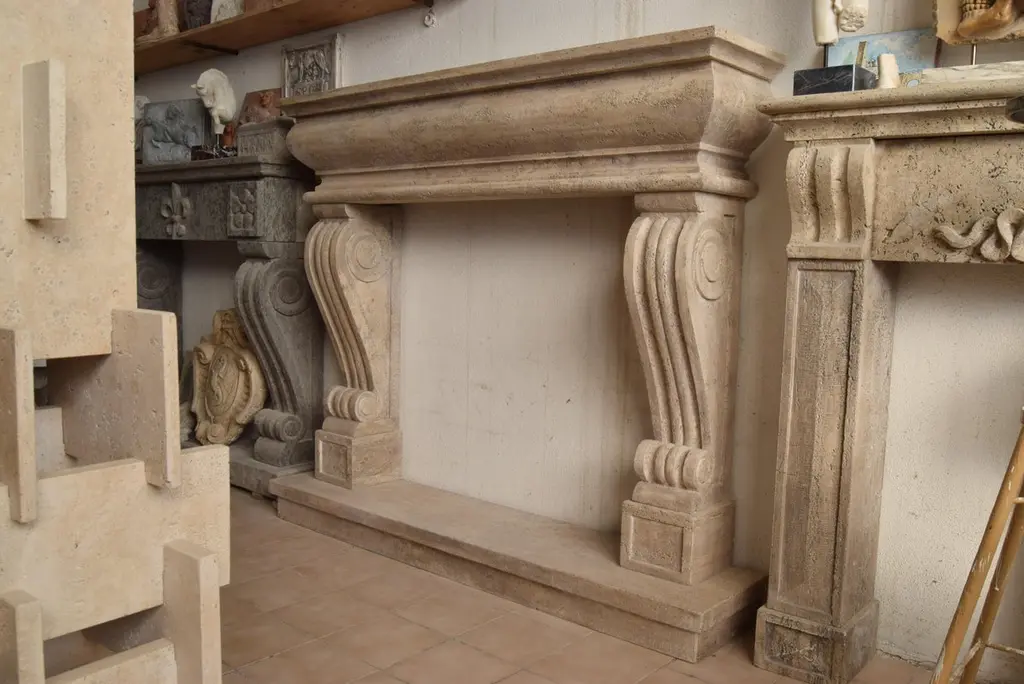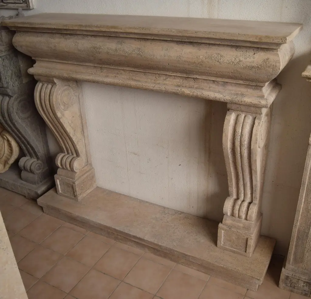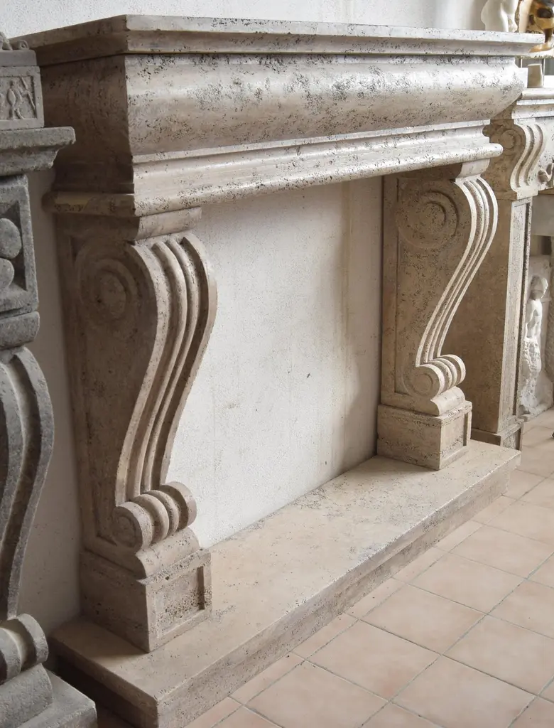 Camino Scolpito Su Travertino Romano In Stile Rinascimentale