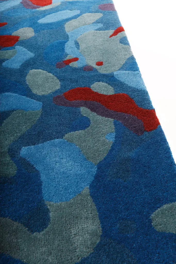 Camouflage Macro Blue, Handtufted, Wool And Viscose, Alberto Artesani