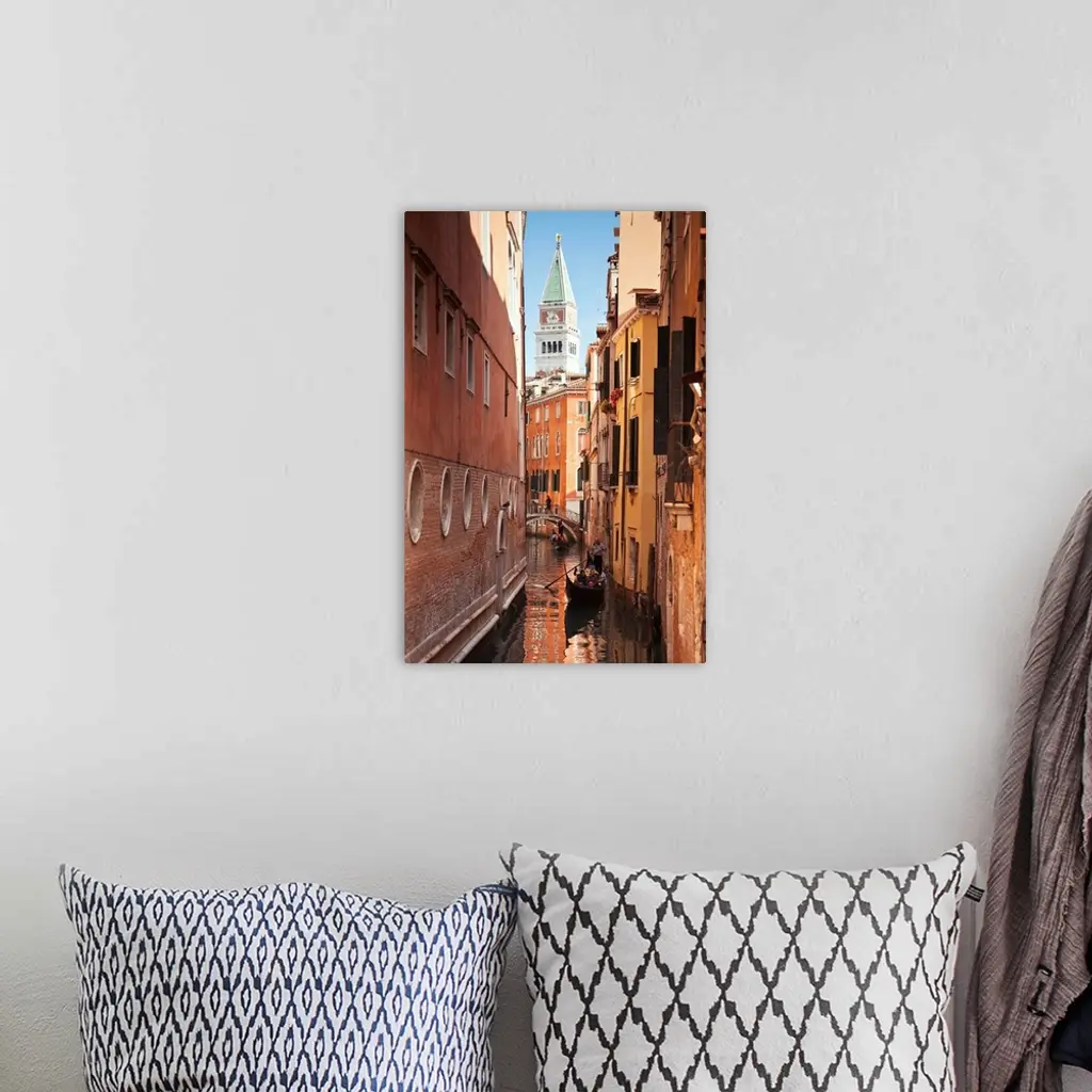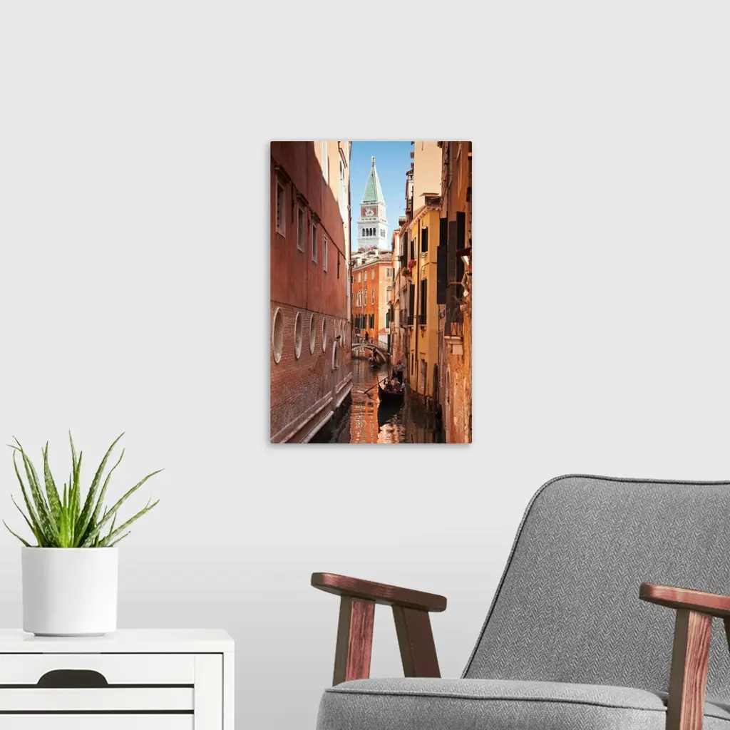 Campanile and gondola on canal in Venice, Italy wall art for home and office decor. Discover canvas art prints, photos, mural, big canvas art and framed wall art in GreatBigCanvas.com's varied collections.