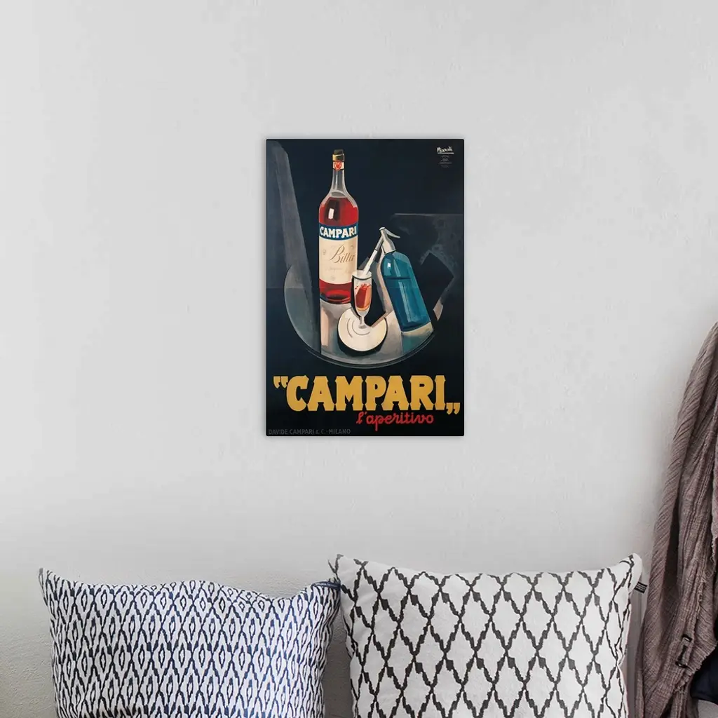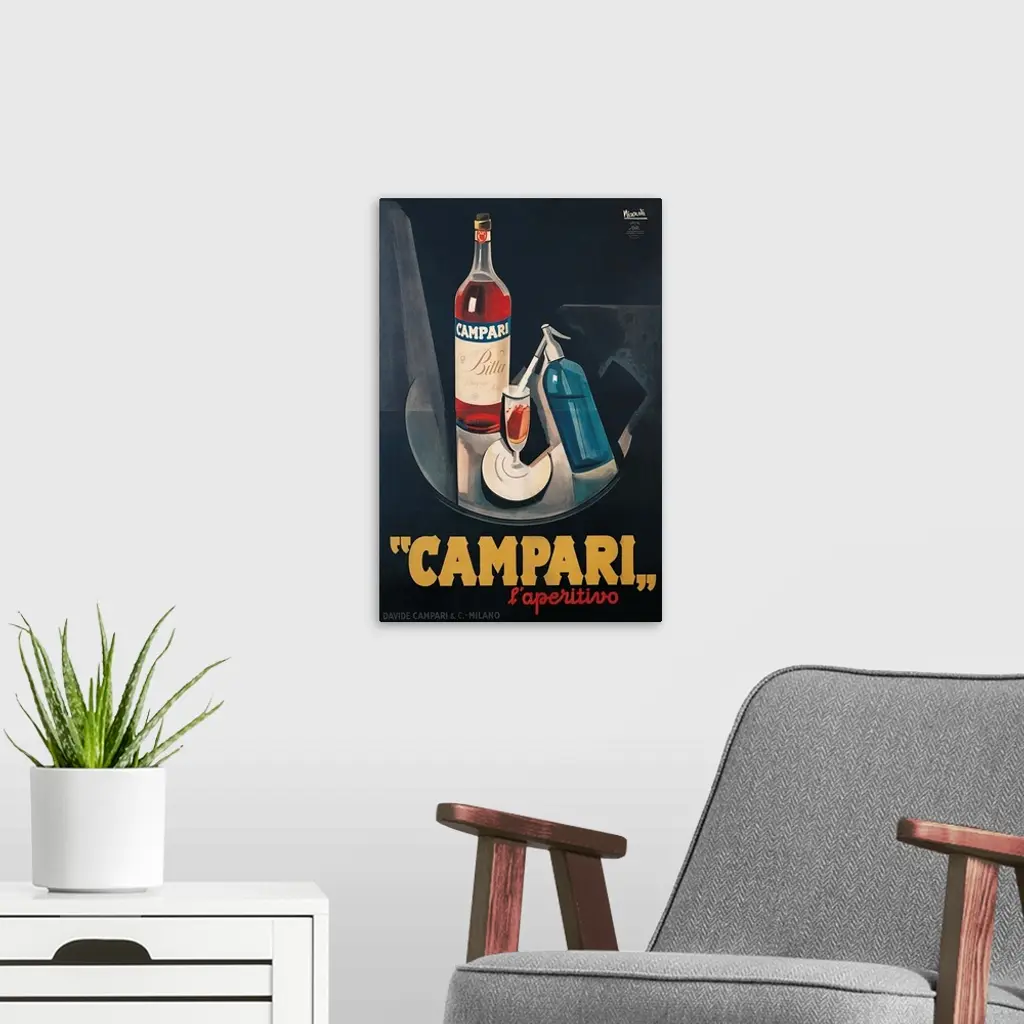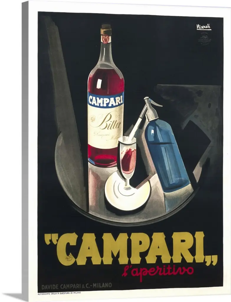 Private Collection. All. Poster advertising Campari aperitif bottle glass soda water black blue red yellow. (159963) Everett Collection\Mondadori Portfolio
