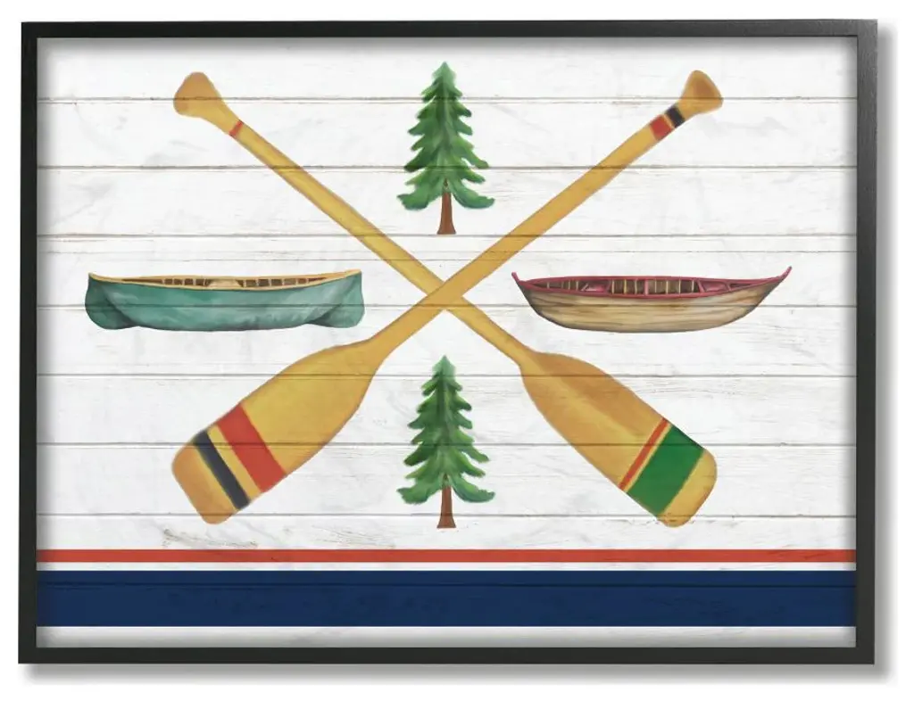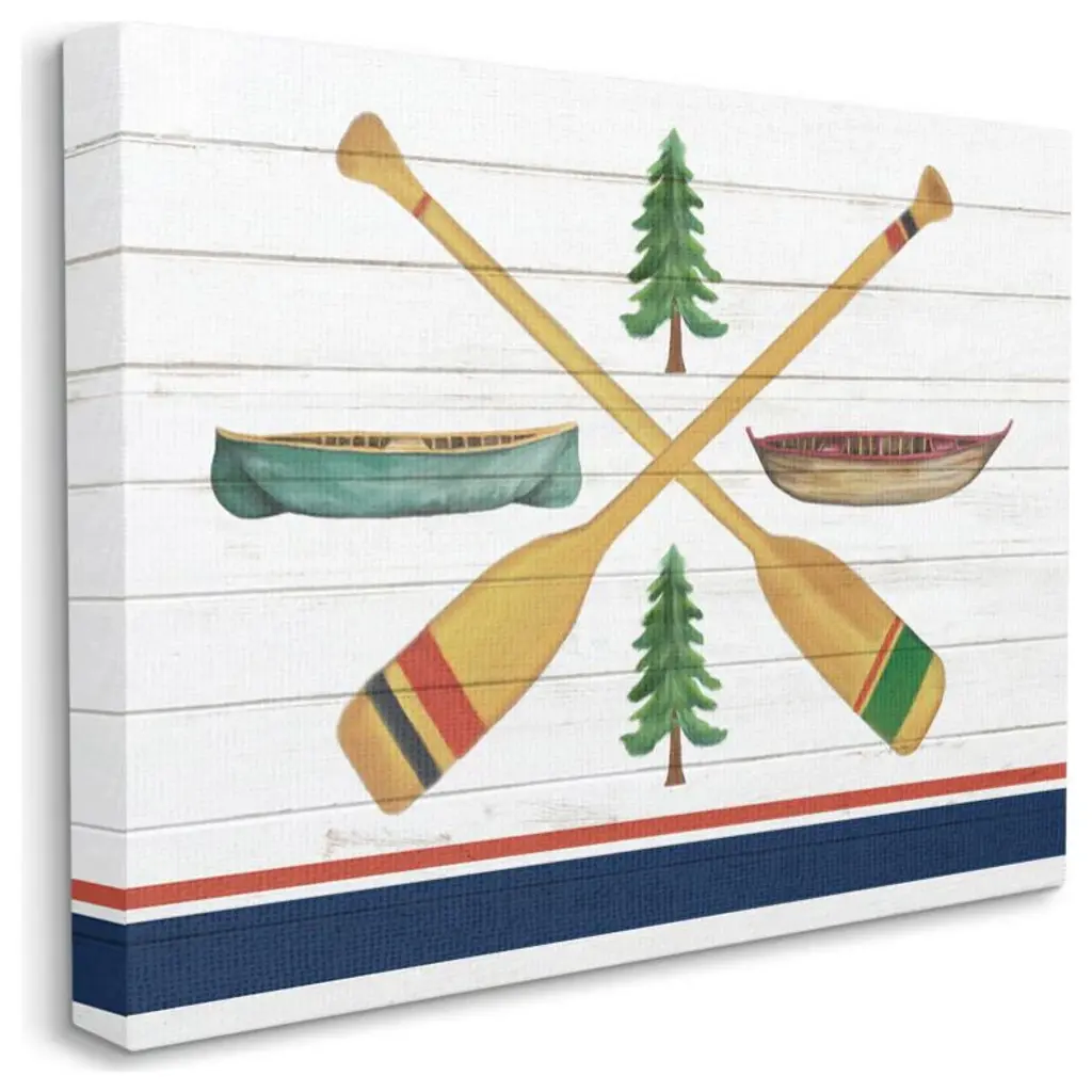 Camping Crossed Oars Boats Brown Blue White Rustic Art,1pc, Each 16 X 20