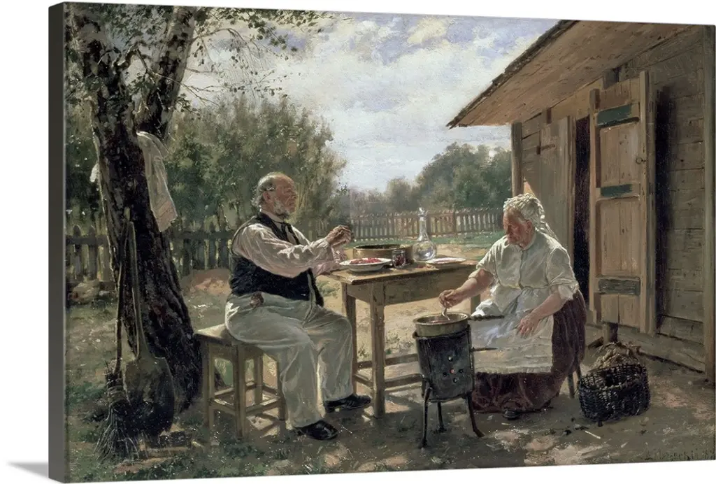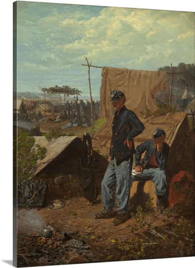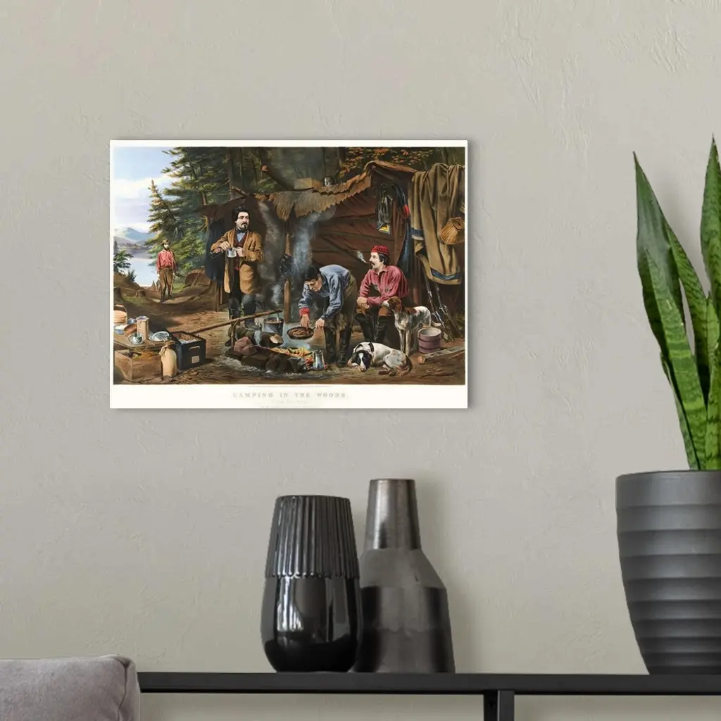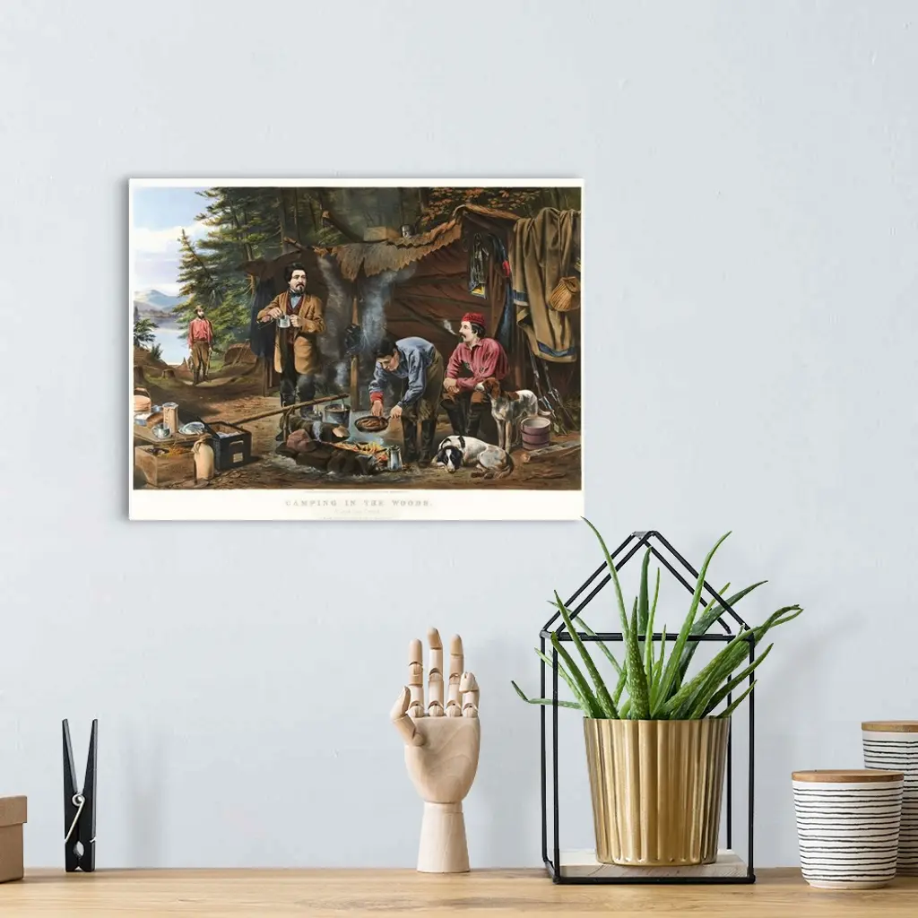 Camping in the Woods - A Good Time Coming (originally colour lithograph) by Currier, N. (1813-88) and Ives, J.M. (1824-95)