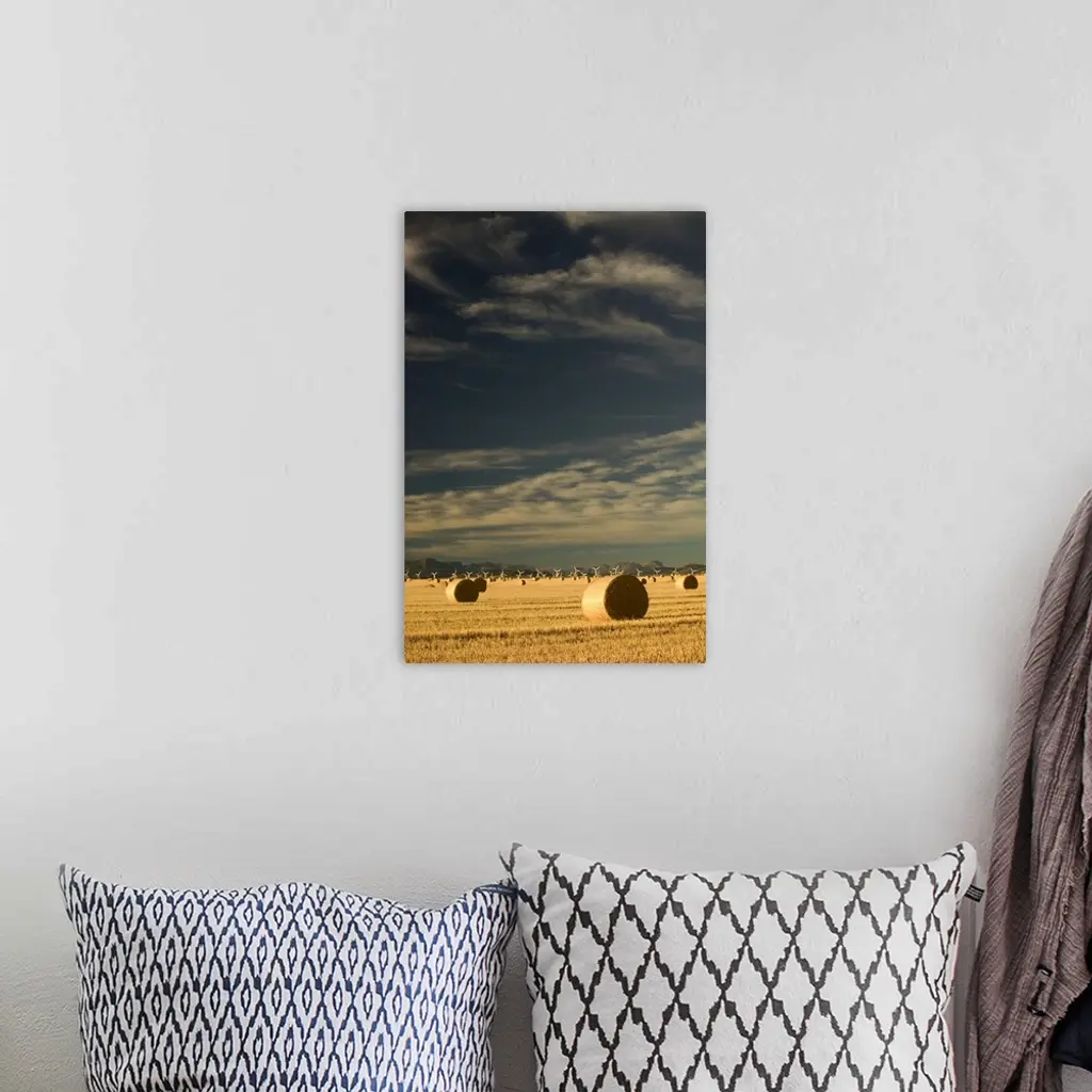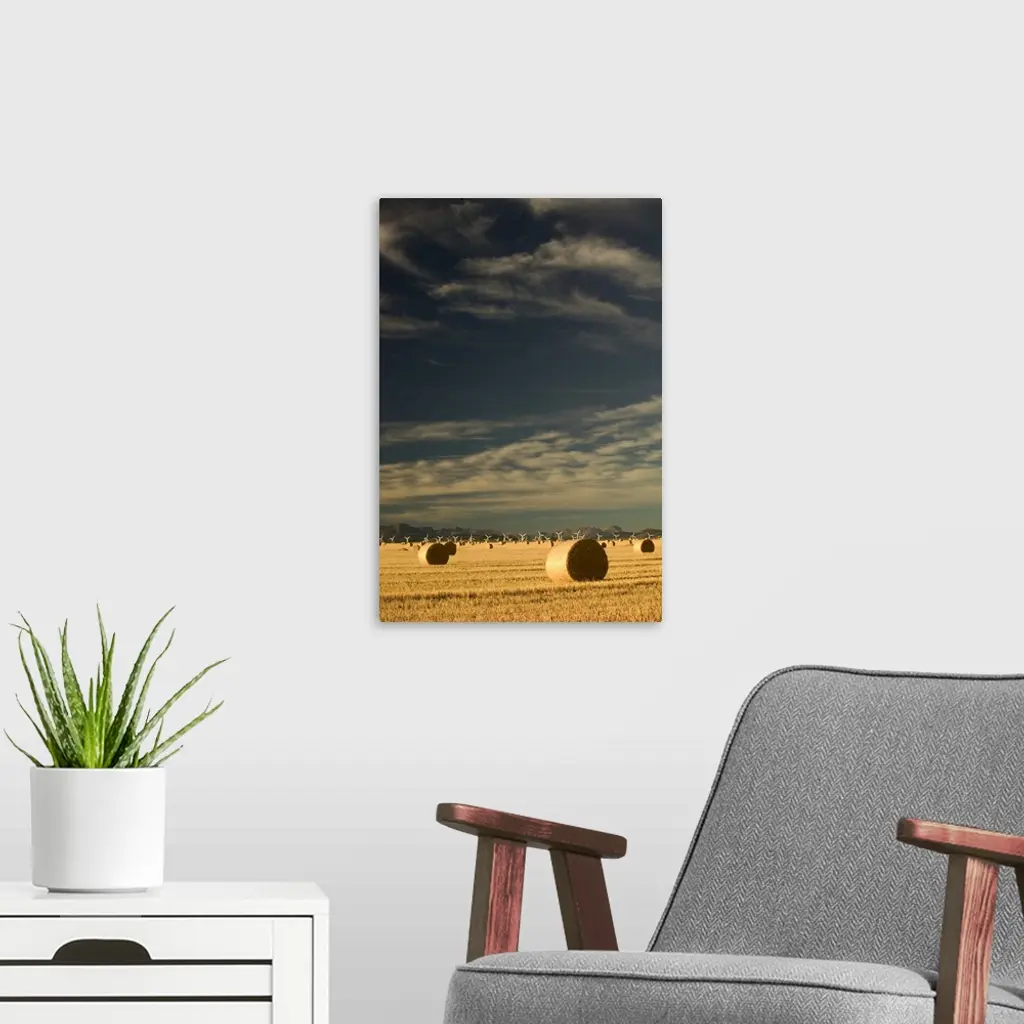 Canada, Alberta, Crowsnest Pass Area, Cowley Ridge Wind Farm Landscape with Hayrolls wall art for home and office decor. Discover canvas art prints, photos, mural, big canvas art and framed wall art in GreatBigCanvas.com's varied collections.