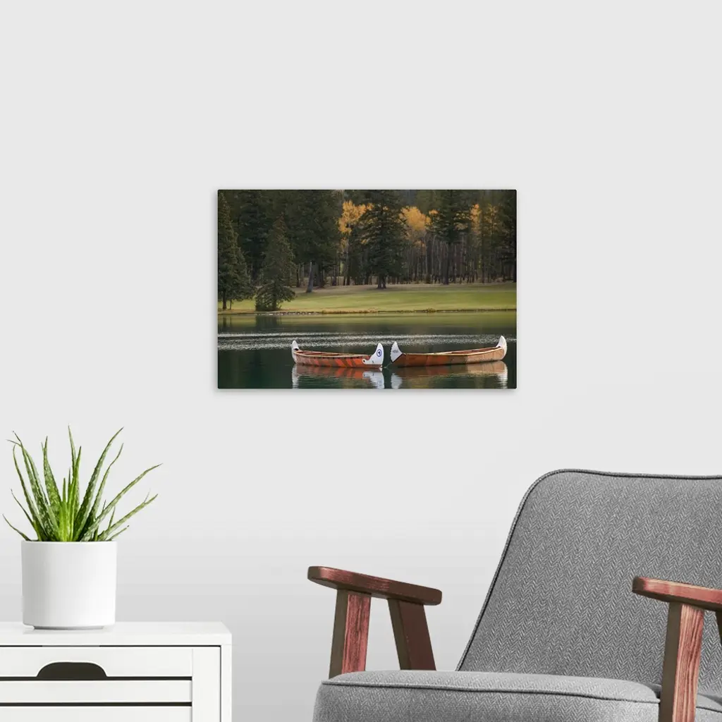Canada, Alberta, Jasper National Park, Lake Beauvert Indian Canoes wall art for home and office decor. Discover canvas art prints, photos, mural, big canvas art and framed wall art in GreatBigCanvas.com's varied collections.