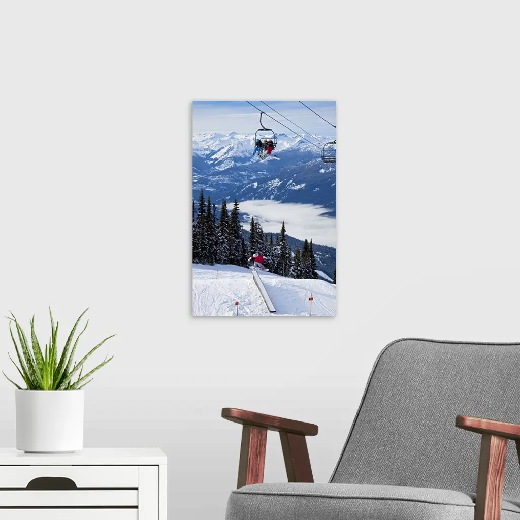 Canada, British Columbia, Skiiing in the 7th Heaven Express slope wall art for home and office decor. Discover canvas art prints, photos, mural, big canvas art and framed wall art in GreatBigCanvas.com's varied collections.
