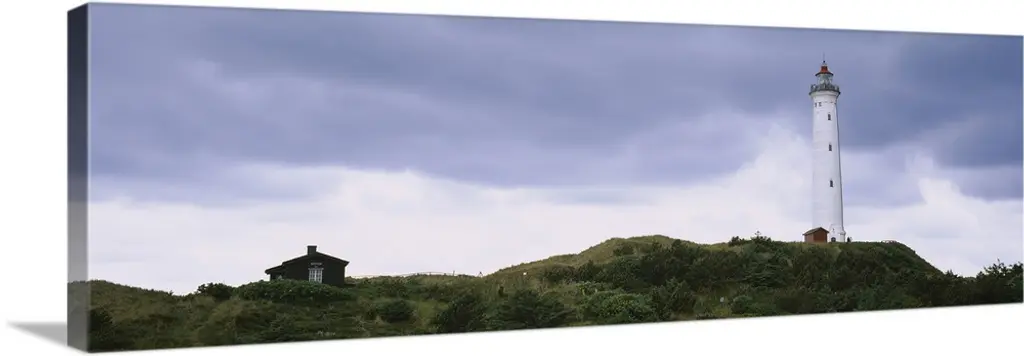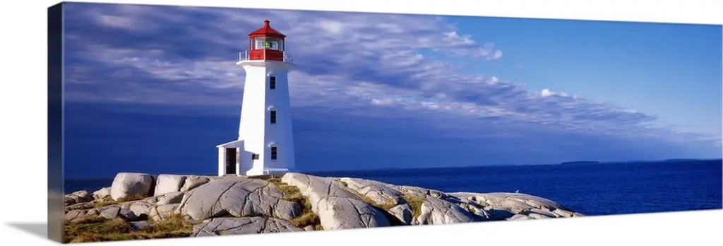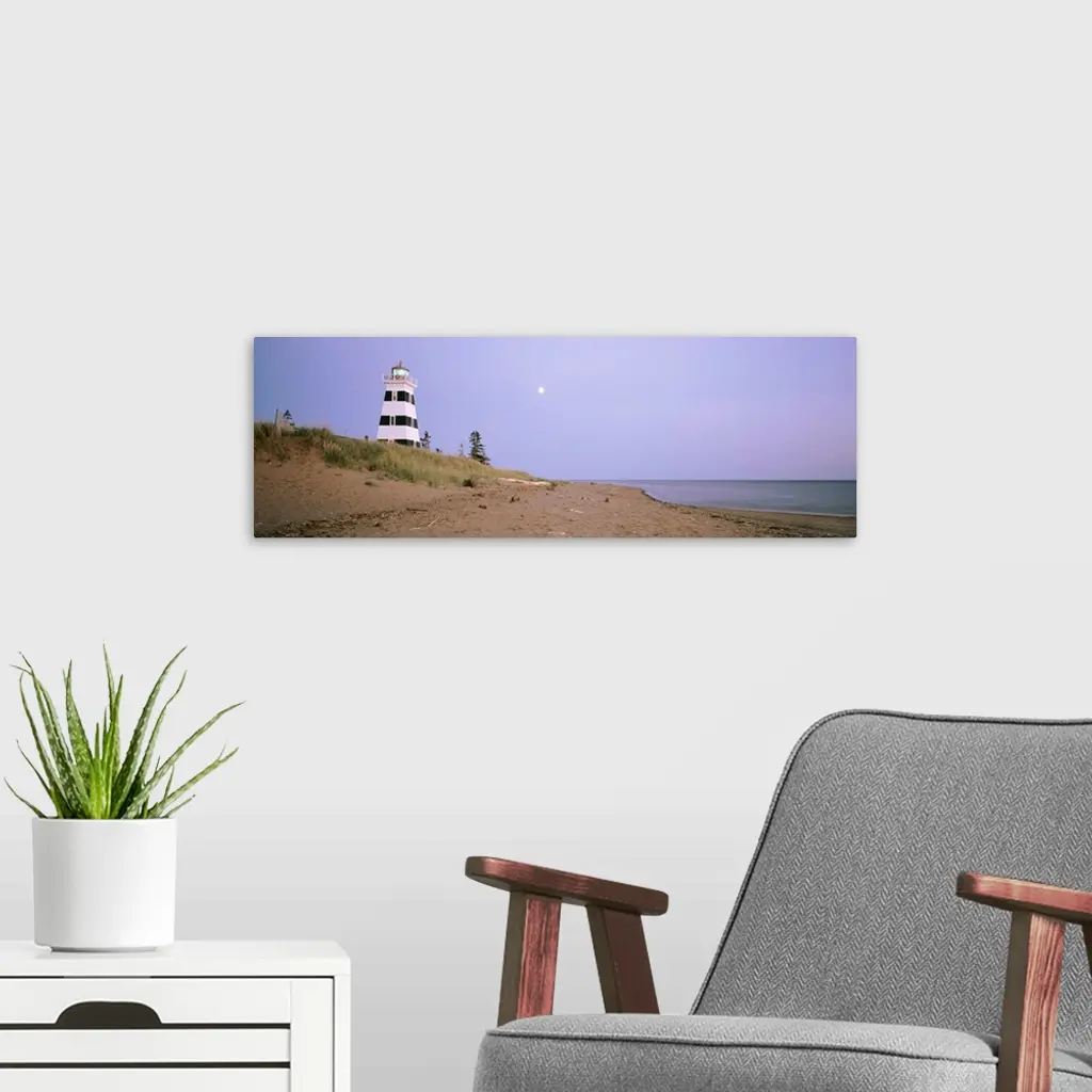 Canada, Prince Edward Island, Low angle view of West Point Lighthouse wall art for home and office decor. Discover canvas art prints, photos, mural, big canvas art and framed wall art in GreatBigCanvas.com's varied collections.