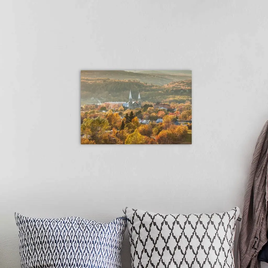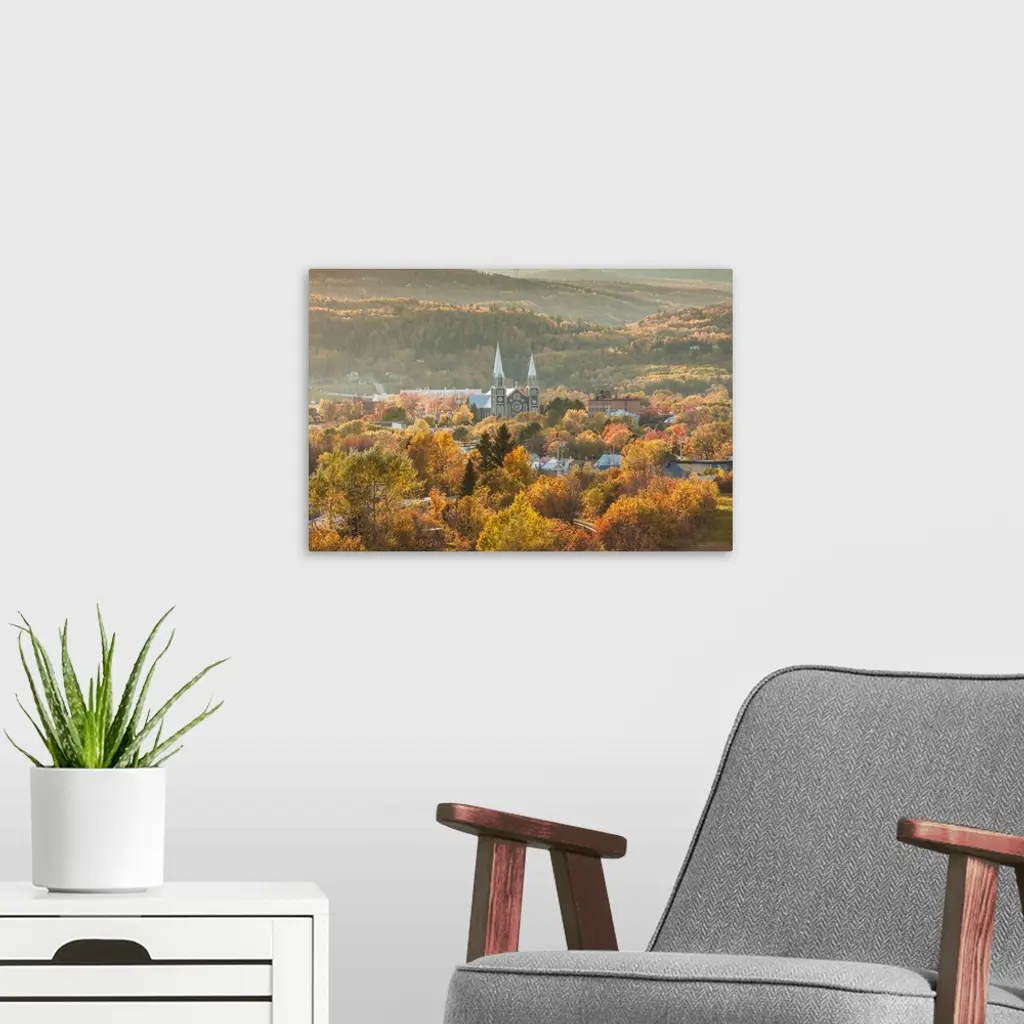 Canada, Quebec, Baie St-Paul, Elevated View Of Town Church, Autumn
