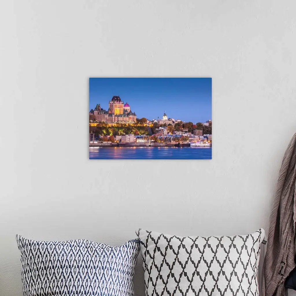 Canada, Quebec, Elevated Skyline With Chateau Frontenac Hotel From Levis, Dawn