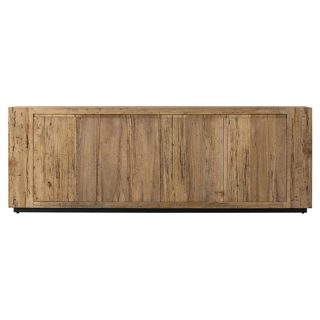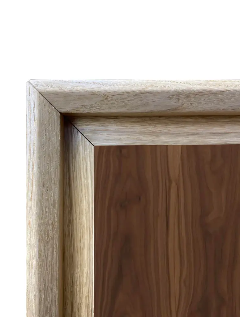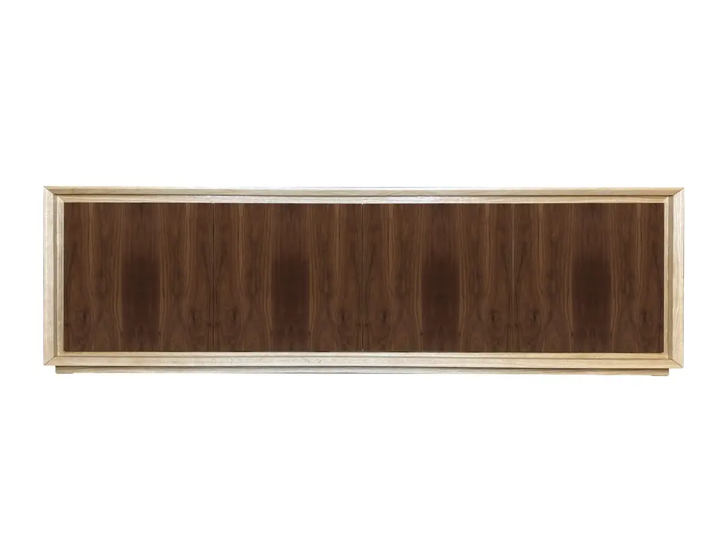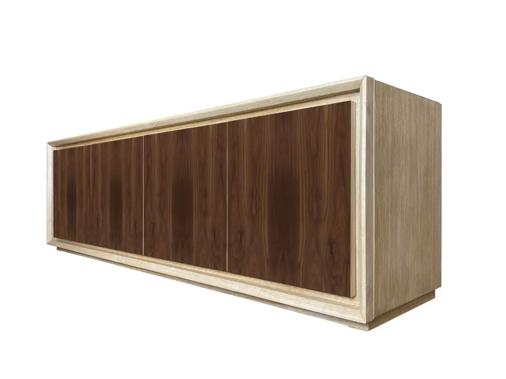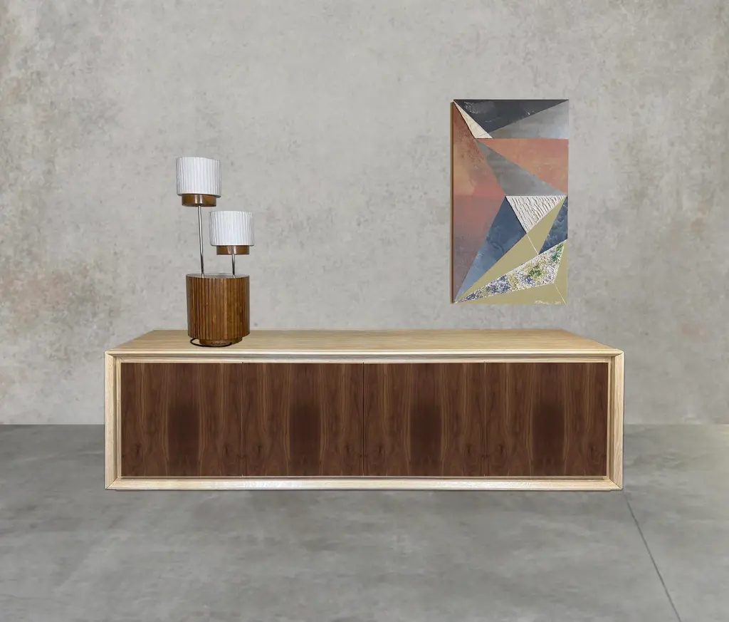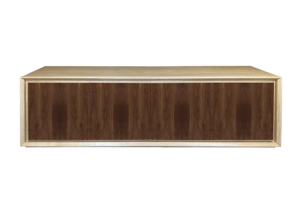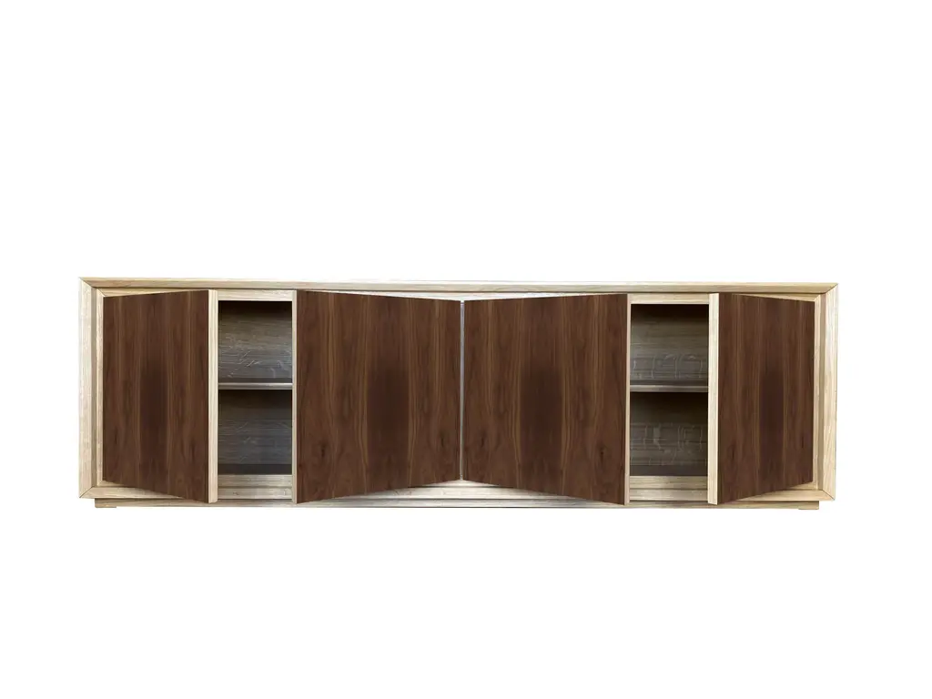 "Canaletto" belief by Mascia Meccani for Meccani Design, 2022. Oak belief with 4 doors in Canaletto walnut and two internal shelves. Dimensions 200 x 48 x h 61 cm Labeled by Maker