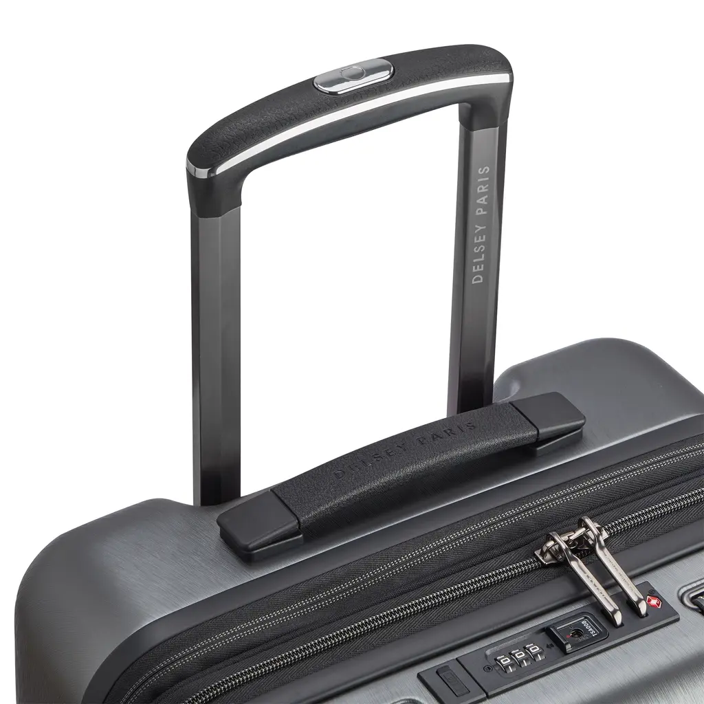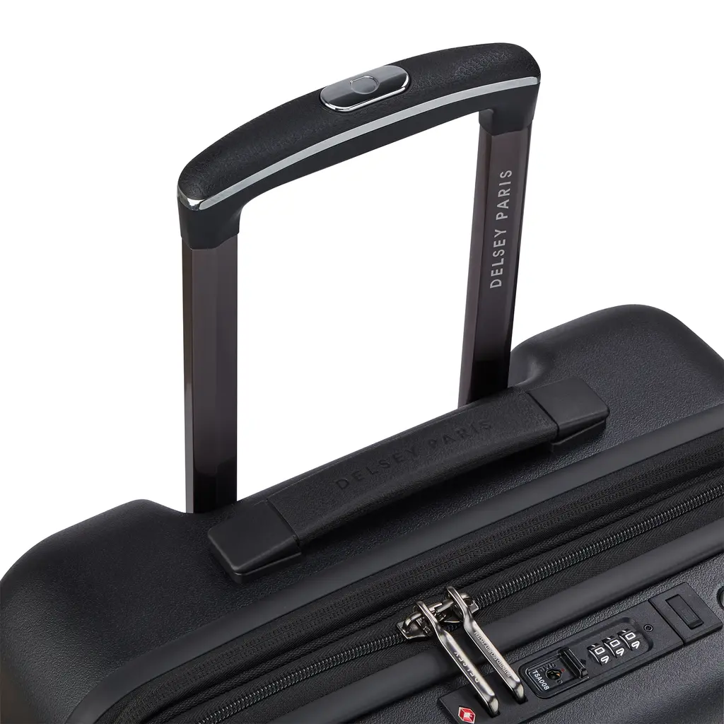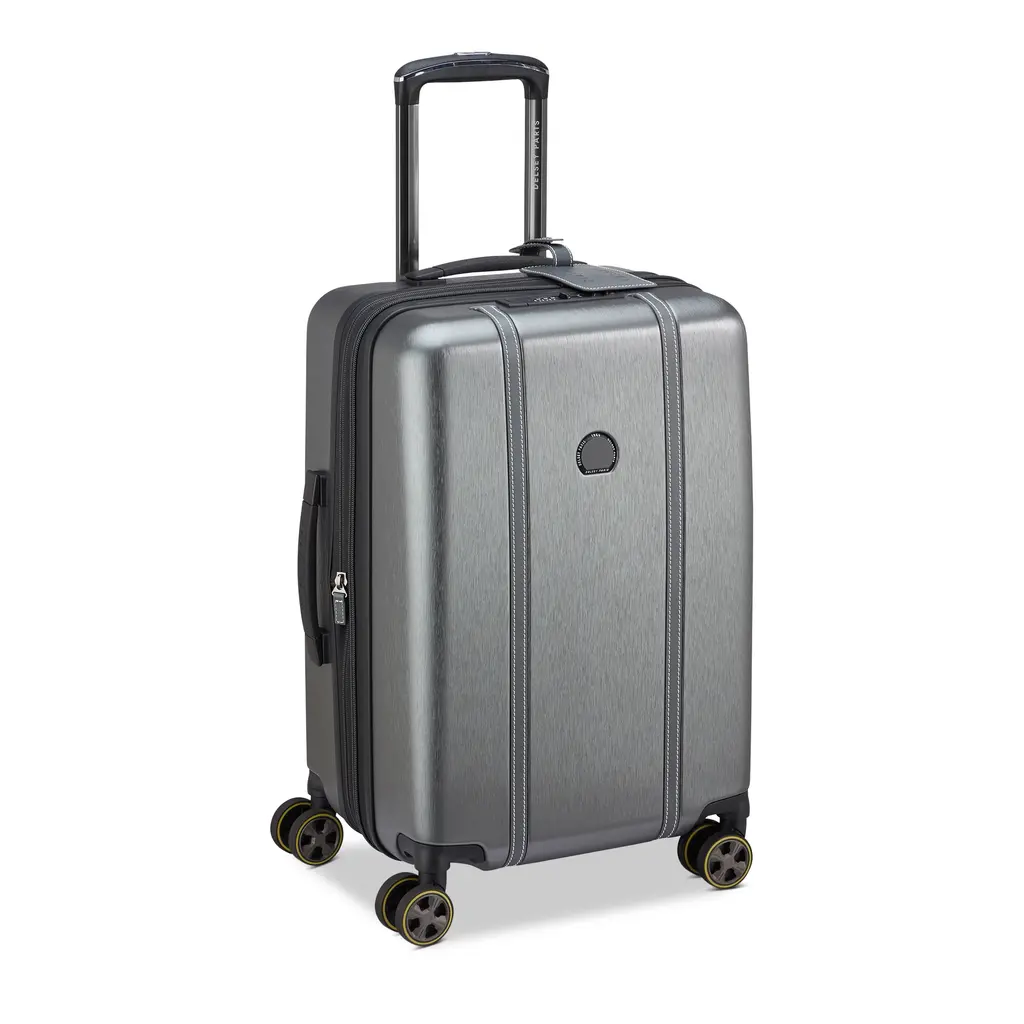 Cadence is a novel collection true to the Delsey Paris heritage; Parisian style entwined with durability. Styled with faux-leather accents and a bonus luggage tag, the carry-on is crafted with multiple functions to enhance every trip. Enjoy a multistage trolley system, a patented ZIP SECURITECH® plus a TSA lock combination for ultimate security, and multi-pocket organization.