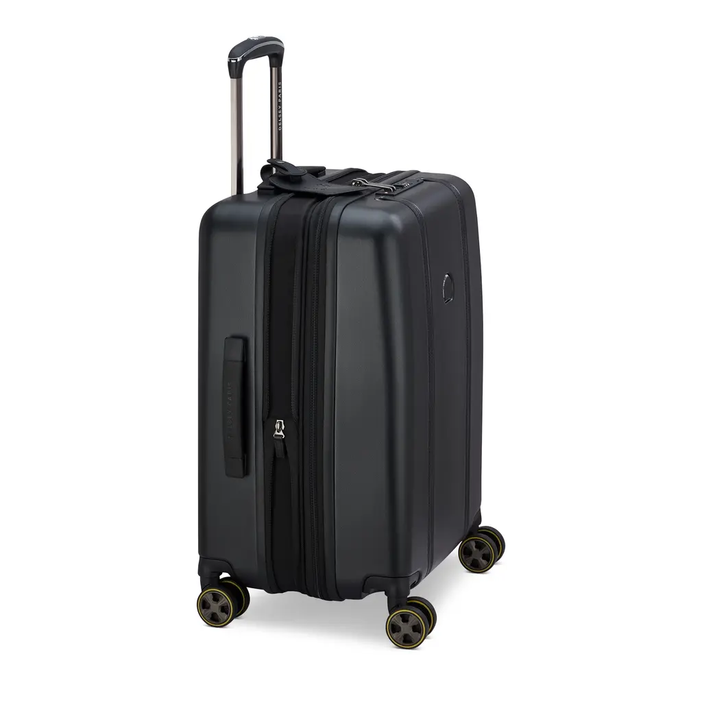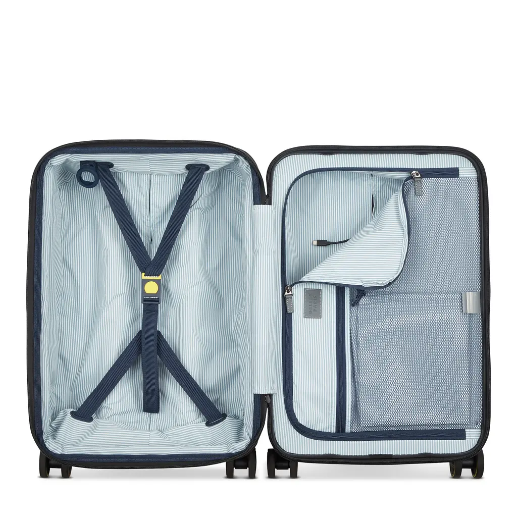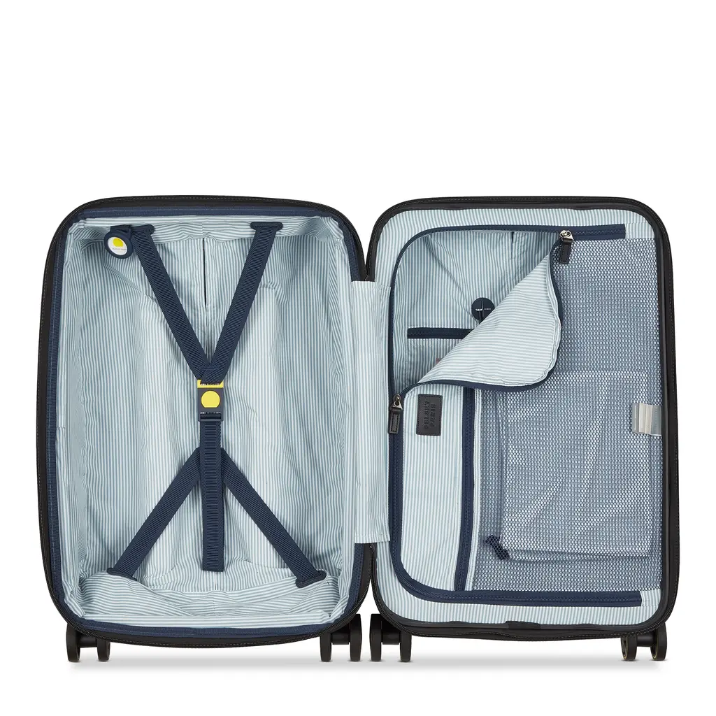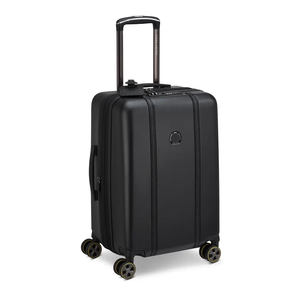 Cadence is a novel collection true to the Delsey Paris heritage; Parisian style entwined with durability. Styled with faux-leather accents and a bonus luggage tag, the carry-on is crafted with multiple functions to enhance every trip. Enjoy a multistage trolley system, a patented ZIP SECURITECH® plus a TSA lock combination for ultimate security, and multi-pocket organization.