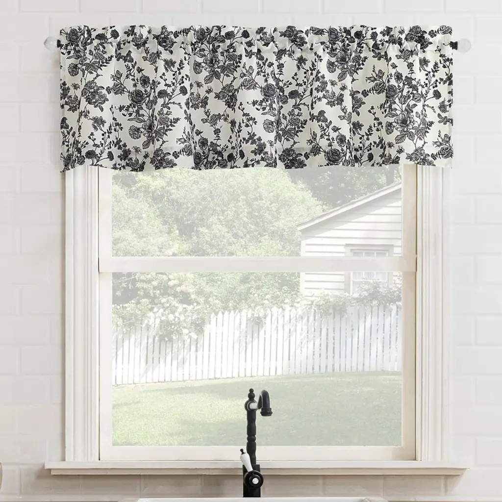 The Arcadia Red collection features a floral design in the traditional style of French toile created in collaboration with WILLIAMSBURG. This valance is perfect for a classic, upscale dining room or a vintage bedroom look; the possibilities are endless!