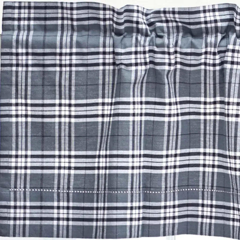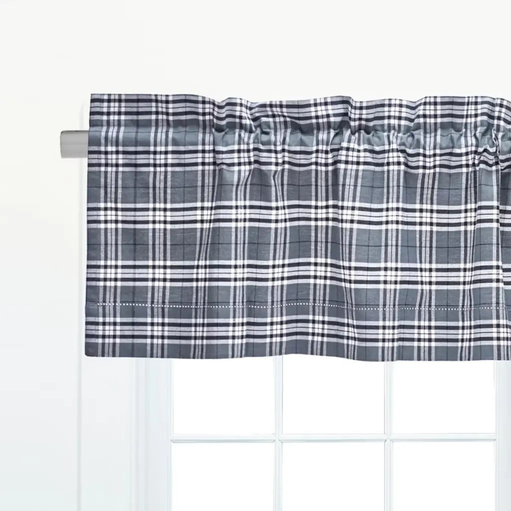 Dress your home in a classic plaid with an updated color way with the Max Plaid ruffled valance. This woven unlined valance features a grey, black and white plaid pattern and is finished with a classic hemstitching detail, putting the picturesque finishing touch on your space while a cool breeze wafts through the window. Coordinate with other items from our Max Plaid collection to adorn your home with this timeless design. Measuring 72 inches wide, this valance includes a two inch rod pocket and 1.5 inch decorative header. Crafted of cotton this unlined valance is machine washable for easy care.