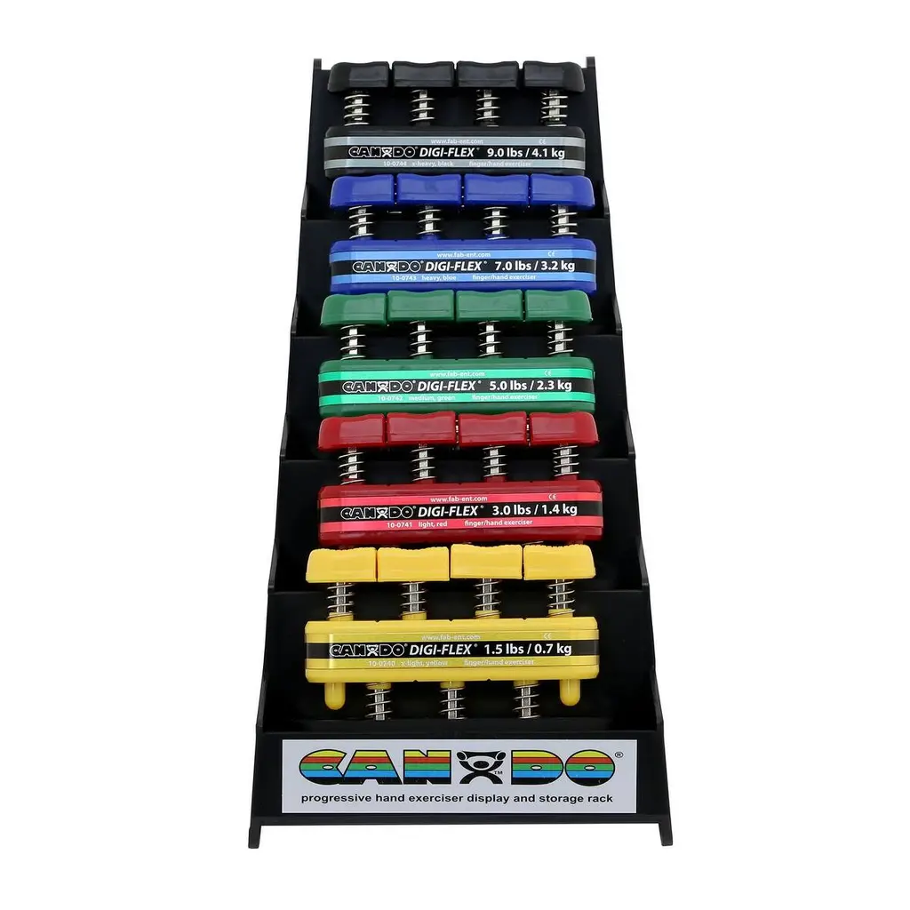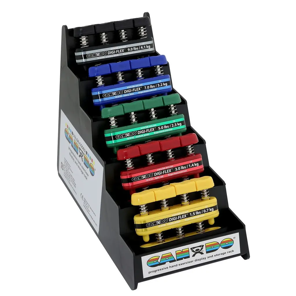 Cando® Digi-Flex® Hand Exerciser - Set Of 5 (Yellow, Red, Green, Blue, Black), With Plastic Rack - Black