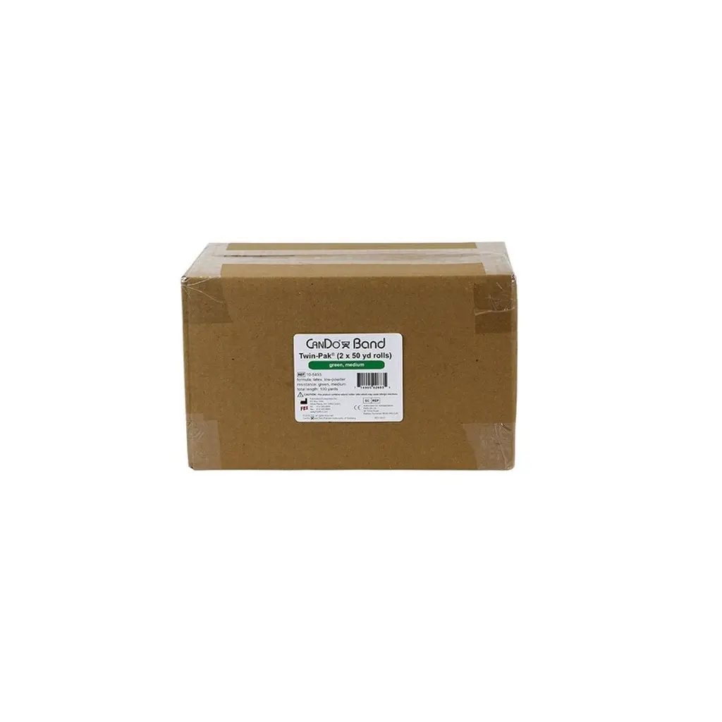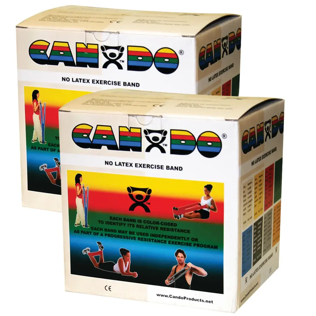 CanDo® resistive band exerciser roll is packaged in a dispenser box. Simply unroll desired length of exercise band from dispenser box and cut with scissors. CanDo® high quality synthetic latex free exercise band has been used for physical therapy and athletic training by clinics, fitness centers and individuals since 1987. It has become a well known staple of many physical therapy programs. The latex free formula has been specially created to mimic the stretch characteristics of latex band. CanDo® exercise band is an economic solution for upper and lower body exercise. Lightweight, compact and portable. Durable. Effective when used alone, or with handles and anchors. Color-coded according to the exercise band's resistance. CanDo® is licensed to use the Thera-Band® color sequence so resistance level is easily identified. Available in 8 levels of resistance for progressive exercise. 50-yard rolls have a core that fits most dispenser racks. 100-yard put-up consists of 2 x 50-yard rolls. Levels range in order of strength from least to greatest resistance: tan, yellow, red, green, blue, black, silver, gold. Uniform width - each band is 5" wide.While we aim to supply accurate product information, it is sourced by manufacturers, suppliers and marketplace sellers, and has not been provided by Overstock.
