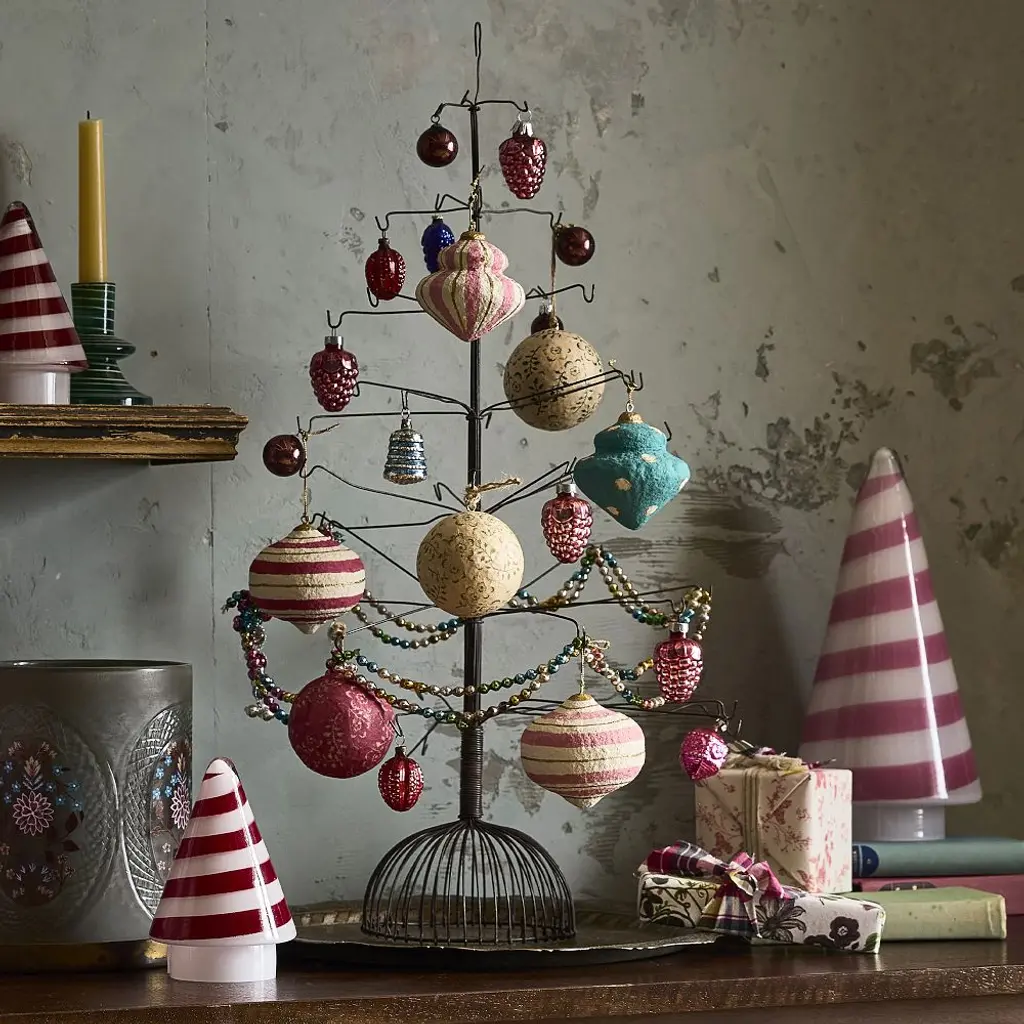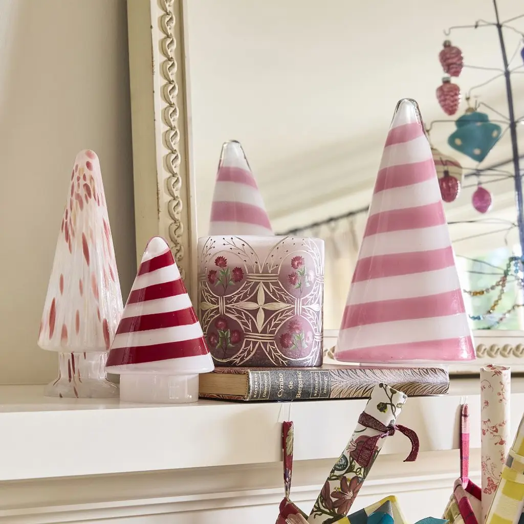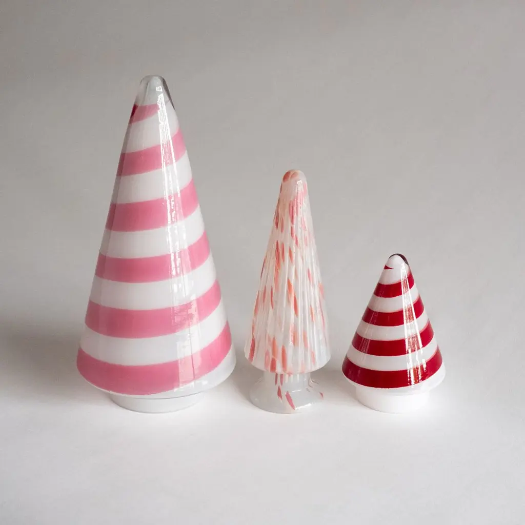 Candy Cane Stripe Glass Christmas Tree Set