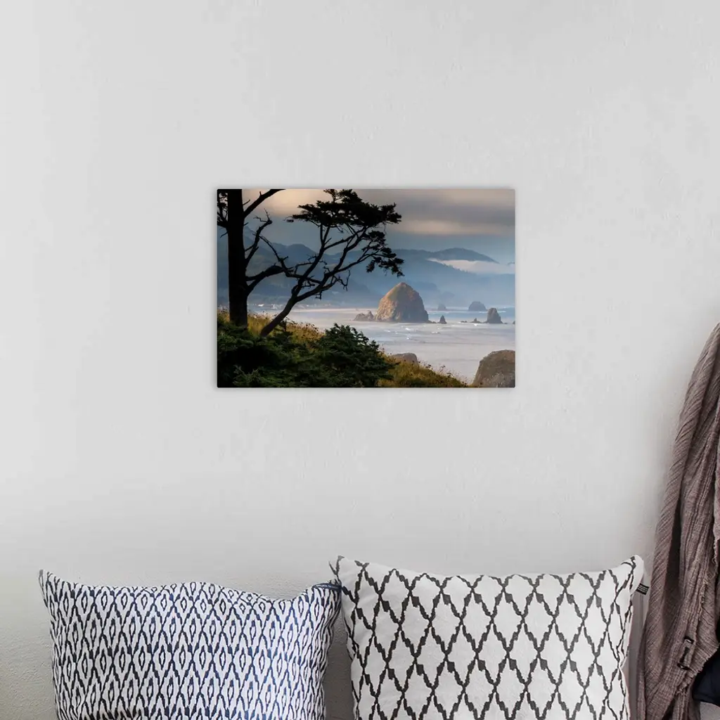 Fine art photo of Haystack Rock on the Oregon coast on a misty morning.