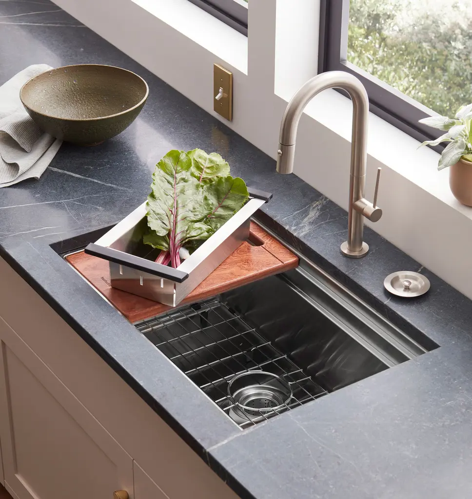 Perfect for the at-home chef, our Cannon Workstation Kitchen Sink is designed to handle every kitchen task. Featuring three tiered levels and a deep, wide single basin, the beveled bottom allows for optimal water drainage and small-radius corners make culinary cleanup easy. Customize your workspace to each task with functional accessories, including a colander, sturdy cutting board, and base grid with rubber feet.