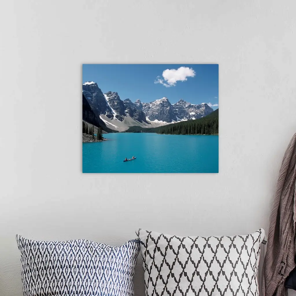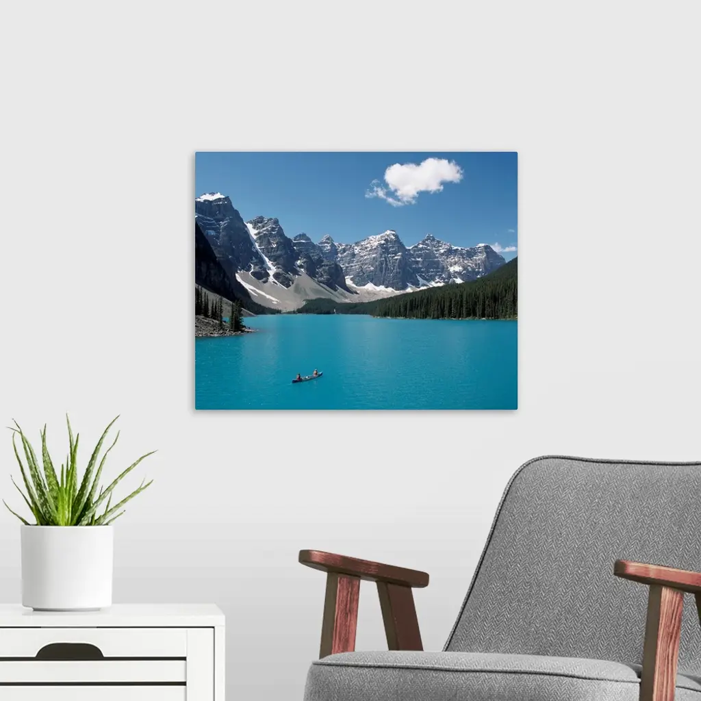 Canoeing On Moraine Lake, Banff National Park; Alberta, Canada wall art for home and office decor. Discover canvas art prints, photos, mural, big canvas art and framed wall art in GreatBigCanvas.com's varied collections.