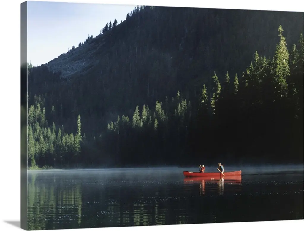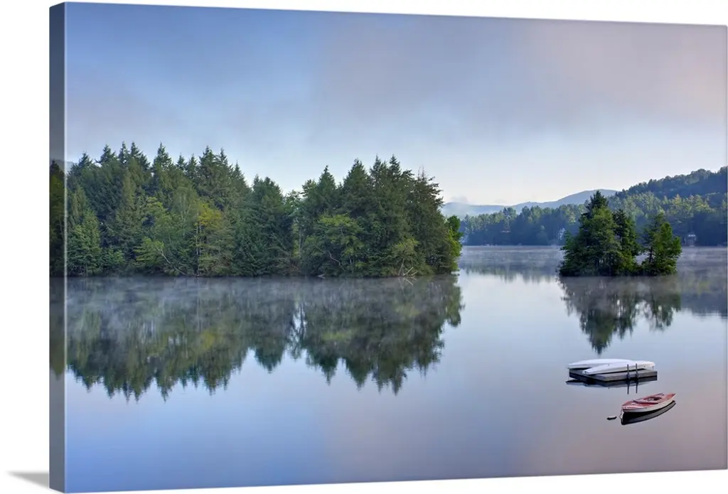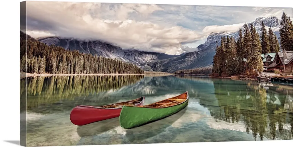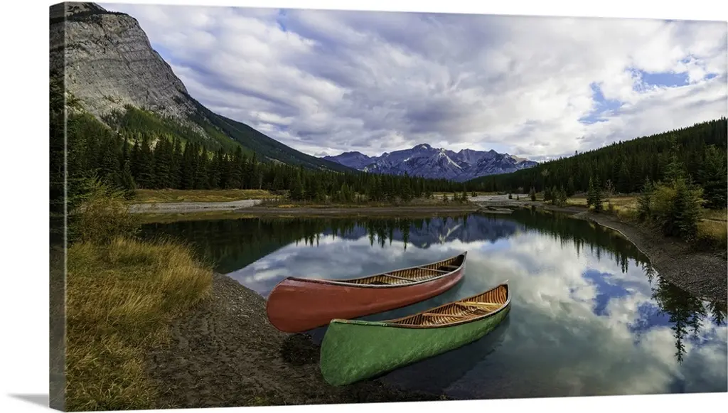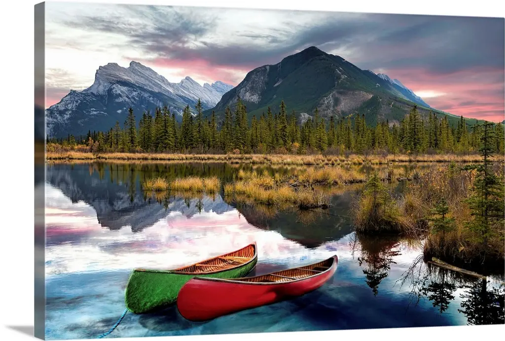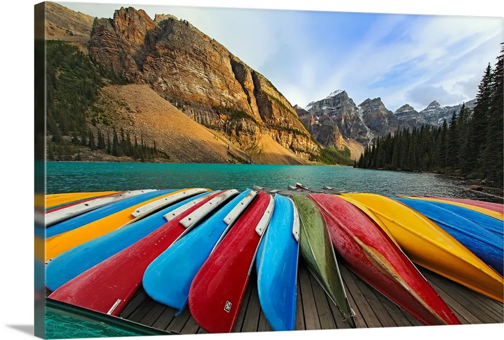 Canoes Lined Up On A Dock At Wonder Lake In Front Of Mt. Mckinley.
