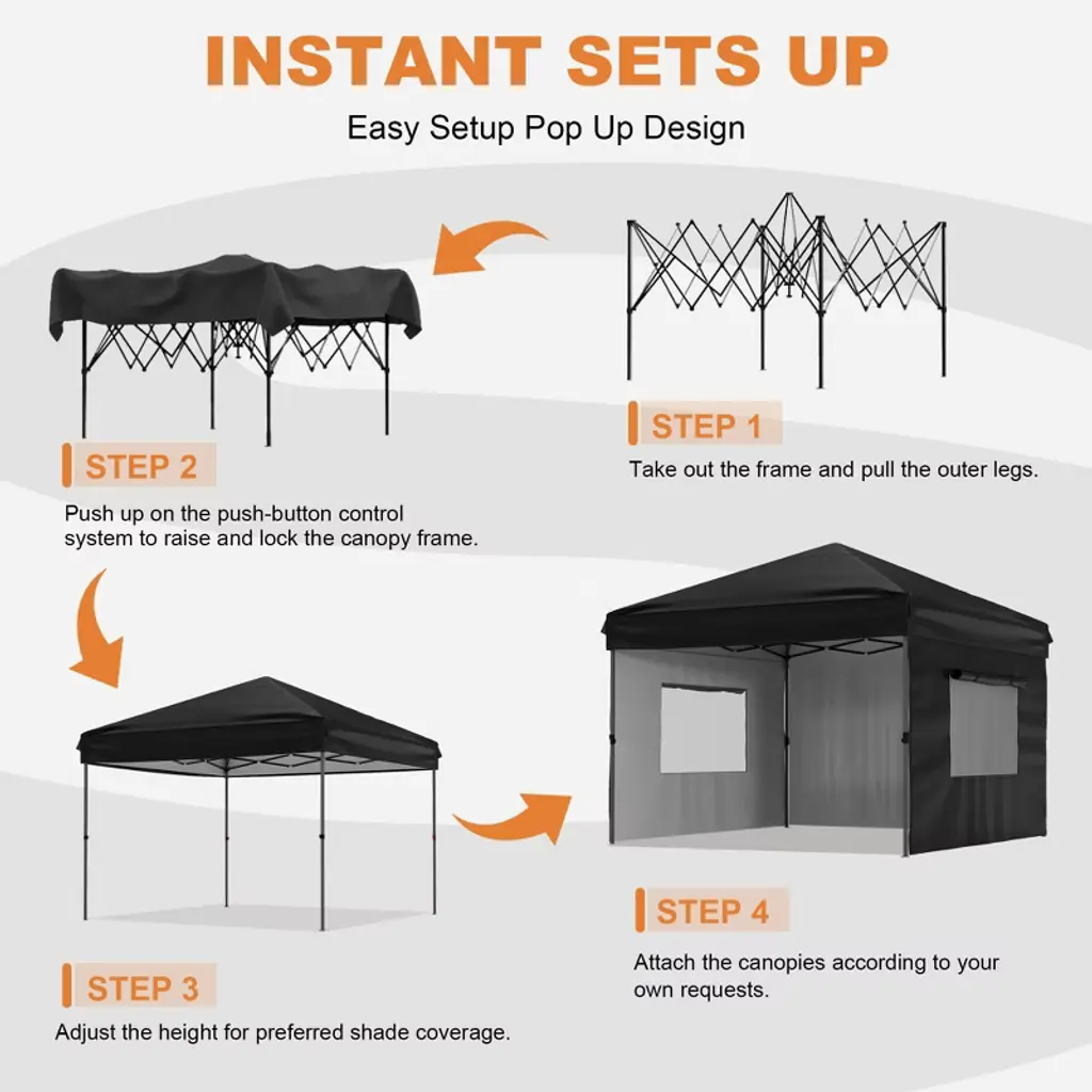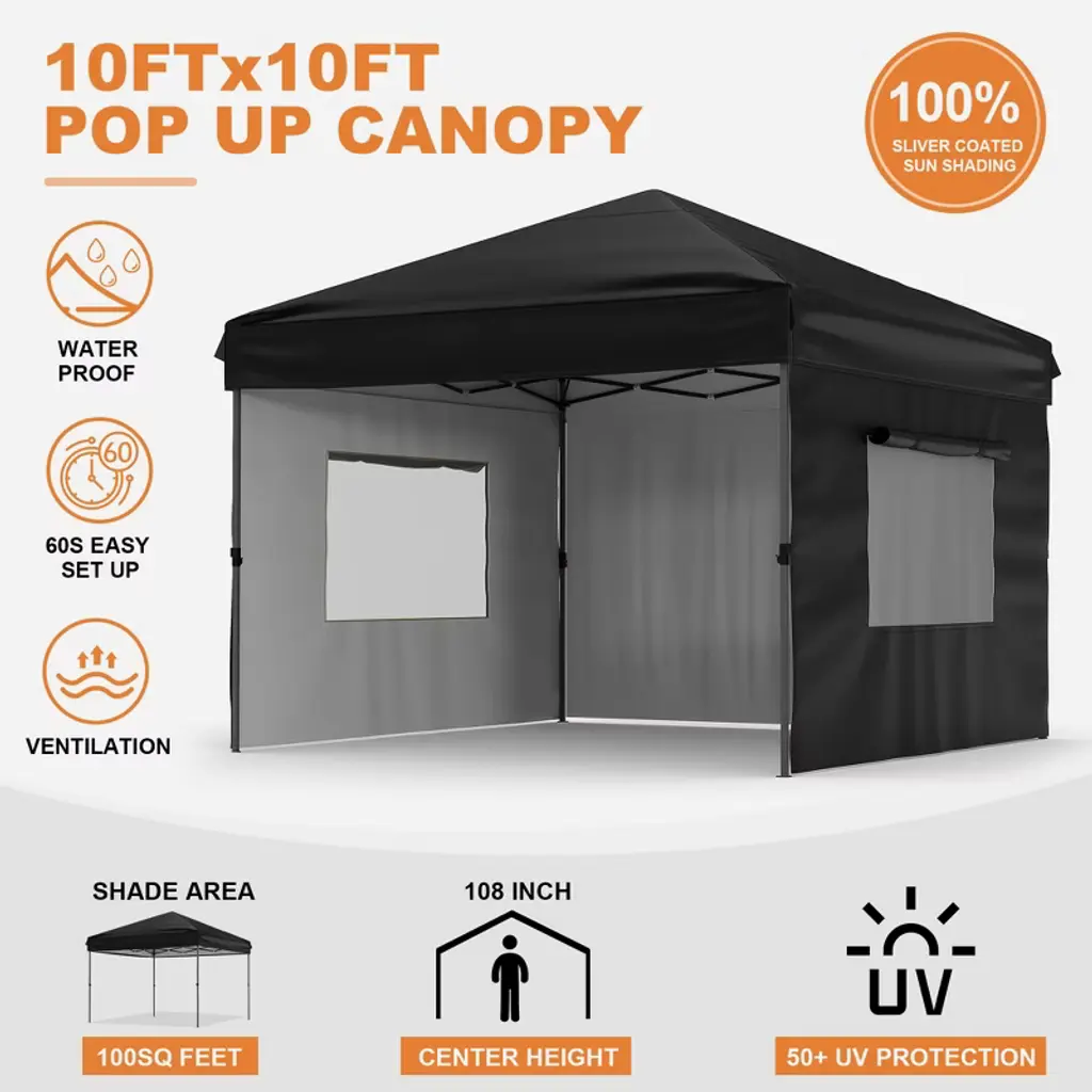 Canopy Tent 10x10 Easy Pop Up, Outdoor Shade Instant Canopy Tents, Comercial Instant Heavy Dutycanopy Pop Up Tent With 3 Sidewalls