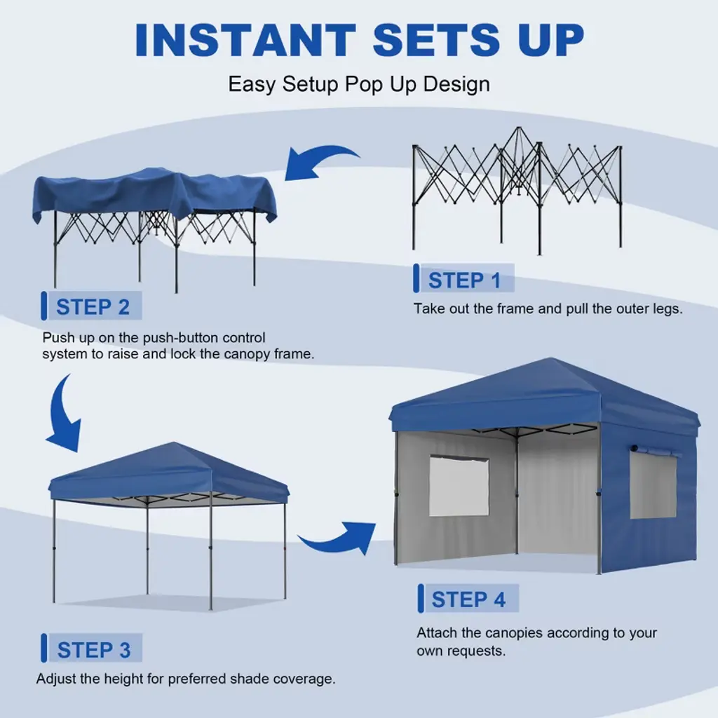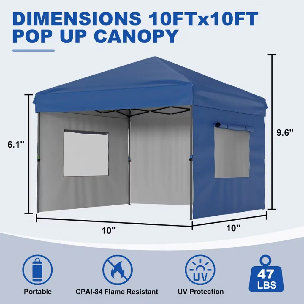 Canopy Tent 10x10 Easy Pop Up, Outdoor Shade Instant Canopy Tents, Comercial Instant Heavy Dutycanopy Pop Up Tent With 3 Sidewalls