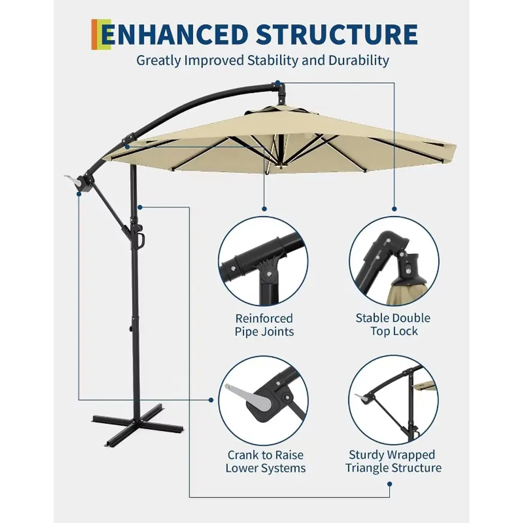 Cantilever Umbrella With Cross Base, 10ft Shade For 2-6 People, Fade-resistant Cross Base Canopy For Deck Pool Garden Backyard,beige