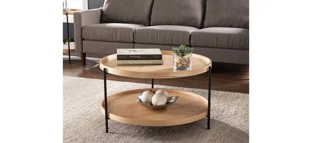 Minimalism goes modern with this Cantwell Round Cocktail Table. Slim legs offer a sleek silhouette, while the visible wood grain creates farmhouse flair. The natural and black finish modernizes your design,updating your rustic look. Plant this coffee table with storage in front of your living room sofa to hold magazines and your morning java or to serve up farm fresh snacks for the family.