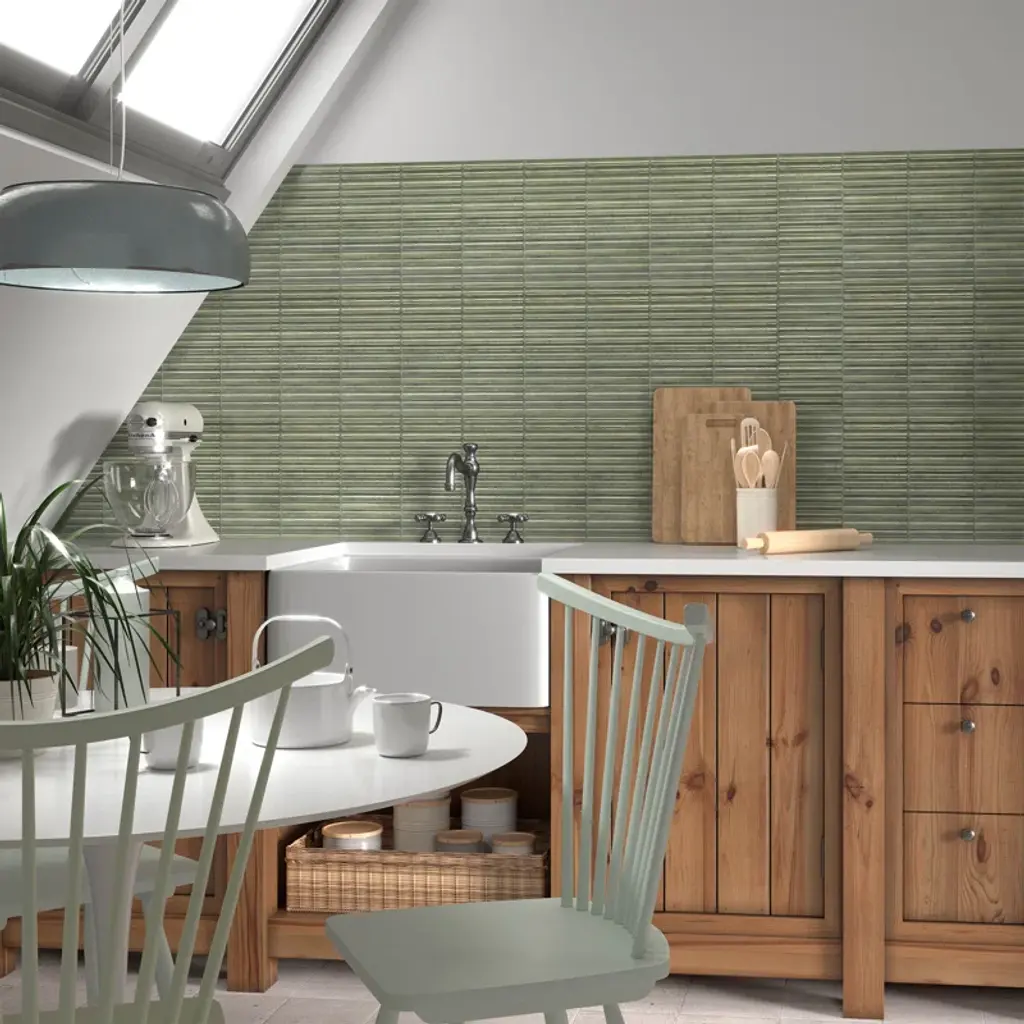 A curated essential, the Canu Collection is named for its wavy, fluted surface, a feature that gives it movement as well as dimension. The elongated subway tile is made from red body ceramic, so its five distinctive colorways are pure and true. Canu can transform a room with its texture and modern, glossy finish.