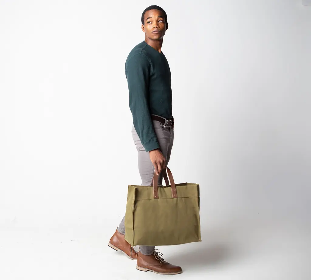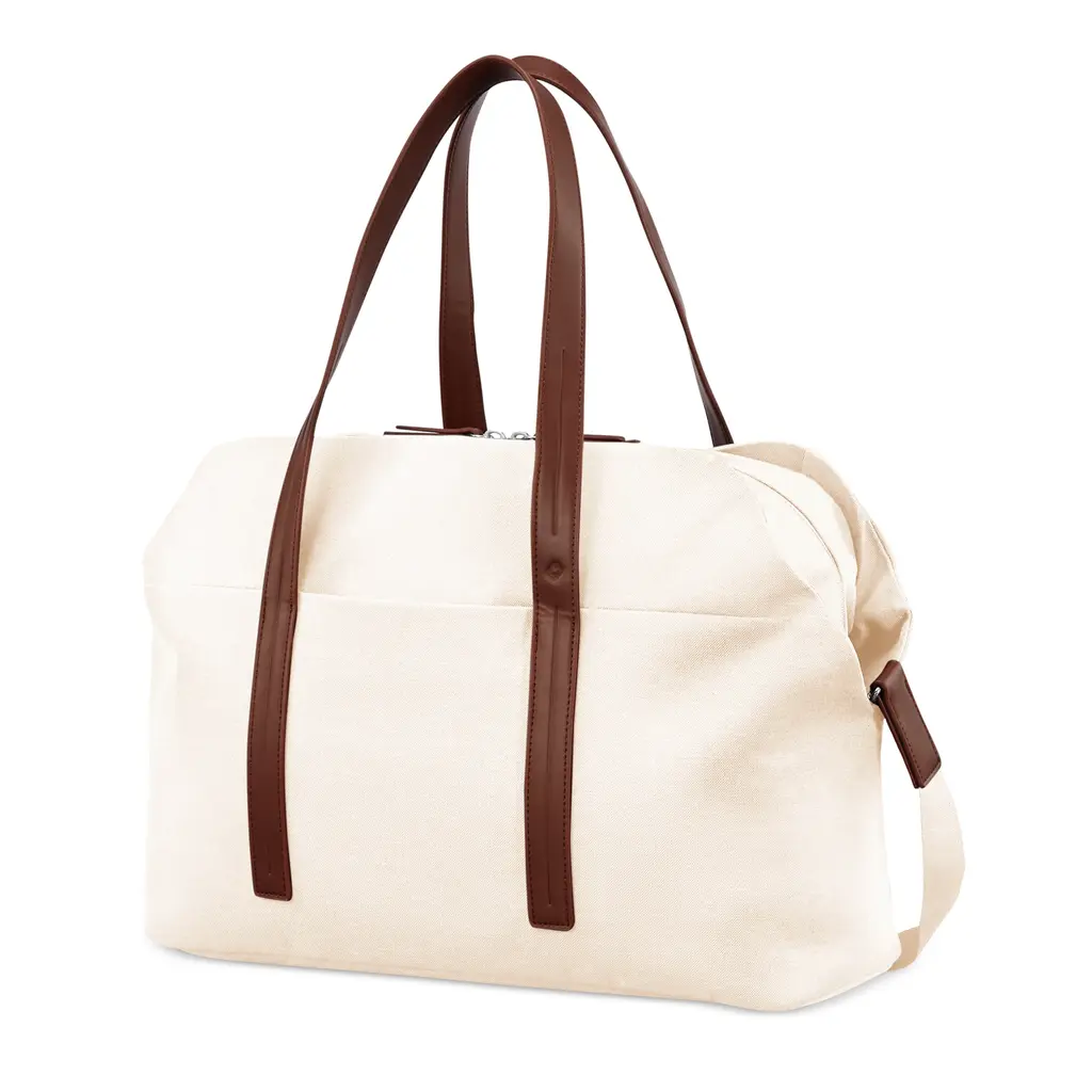 Your new go-to for weekend getaways and park playdates, this large bag is handcrafted of cotton canvas with contrasting leather handles. With a roomy interior and classic design, it’s sure to become a fast favorite among the whole family.