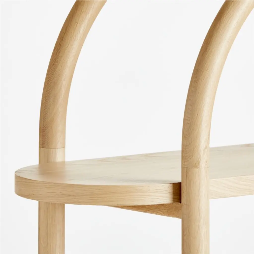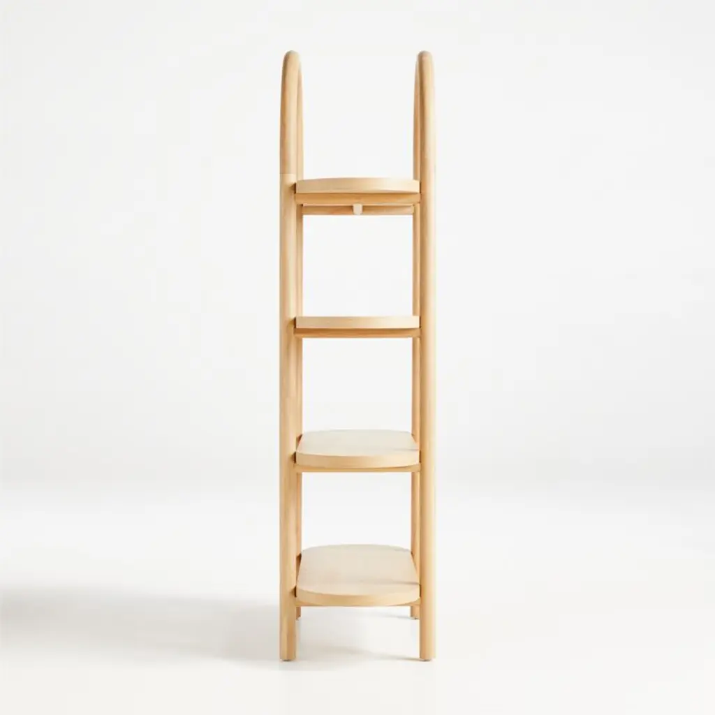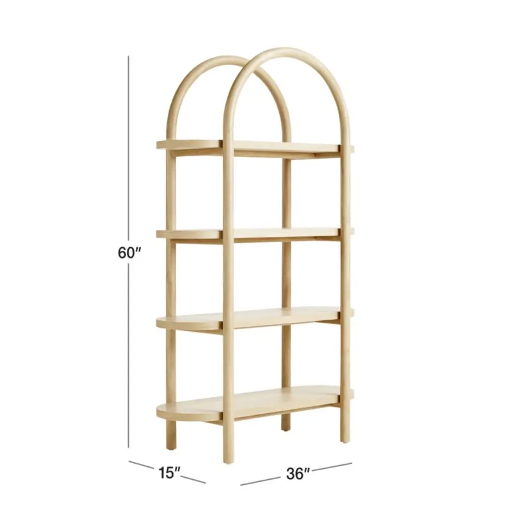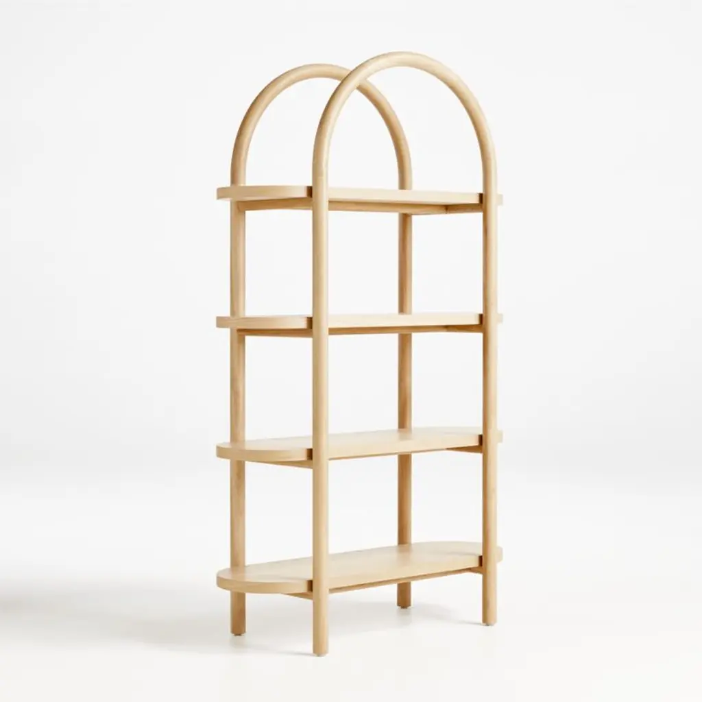 Striking a balance between playful and design-forward, this airy bookcase provides plenty of space for prized possessions and beloved books. Round solid white oak posts curve into soaring arches that support four pill-shaped shelves. Designed by Leanne Ford, our Canyon Natural Tall Bookcase adds storage space and cool factor to the nursery or kids' room.Star designer and mom Leanne Ford brought her cool, casual style to our new collection for kids (and parents) who love to create, play and make magic together.