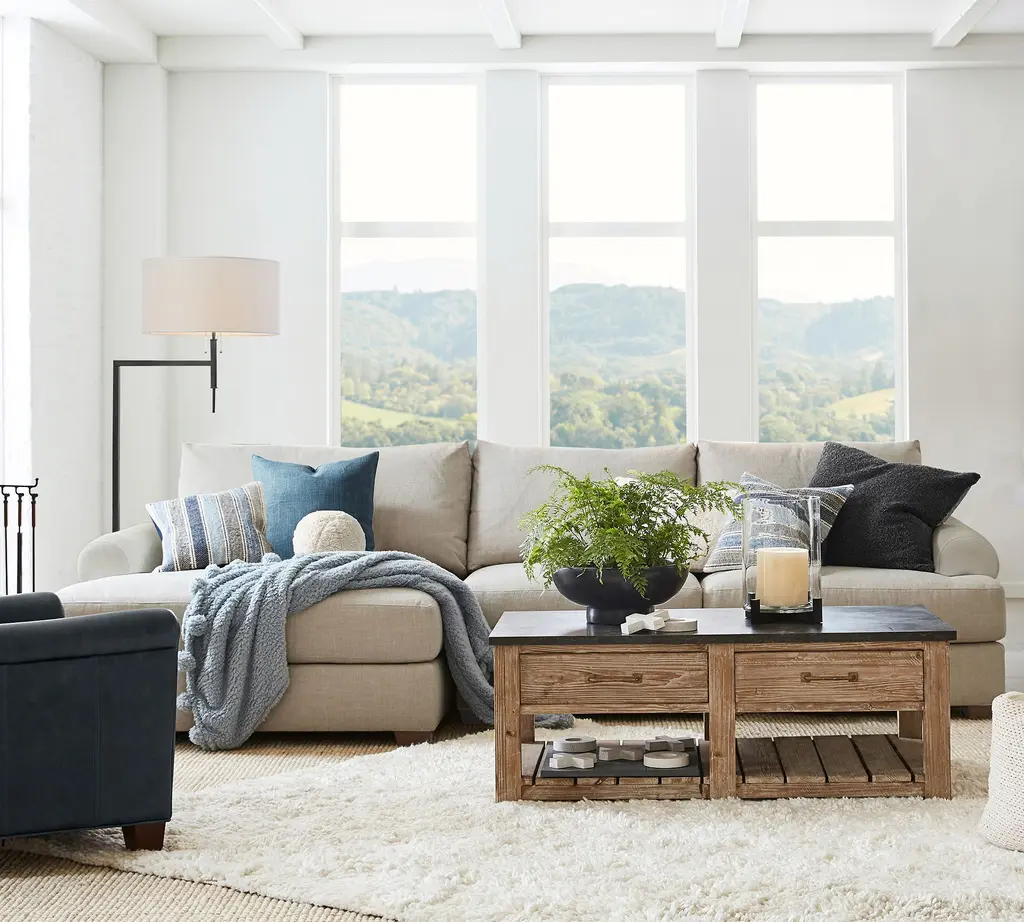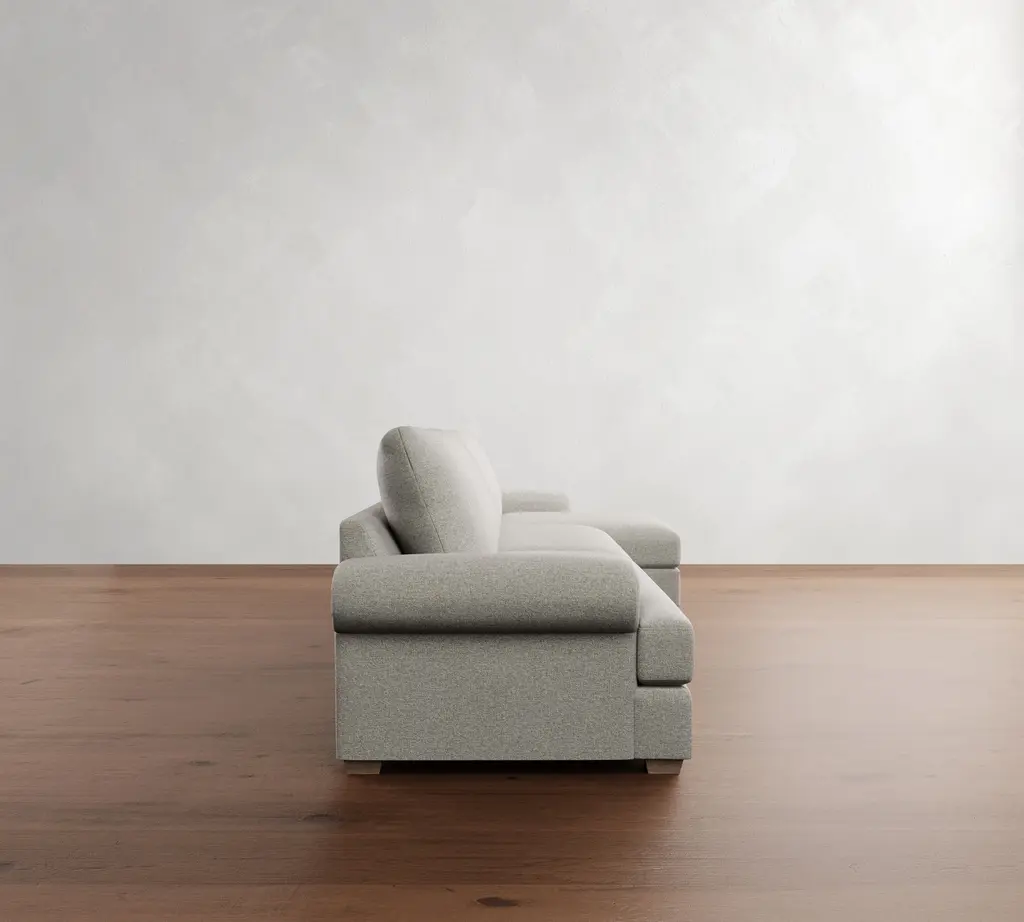 Modern form meets classic comfort: The secret to our Canyon Collection is a low profile and oversized cushions that feel like you’re on cloud nine, and is designed for curling up with a book or watching your favorite show. You choose the arm style and fabric, and expert craftspeople will make it to order.