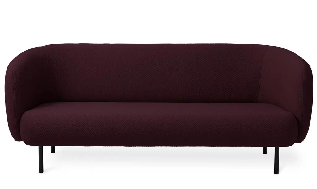 Caper 3 seater Mosaic Dark Bordeaux by Warm NordicDimensions: D206 x W84 x H 63 cmMaterial: textile upholstery, wooden frame, powder coated black steel legs.Weight: 55.5 kgAlso available in different colours and finishes. An elegant sofa with an organic design inspired by the puffed sleeves and layered designs of haute couture. Its soft lines and chic details make the Cape sofa a natural focal point, preferably in the company of the armchair in the same range. Both items of furniture are available with or without visible stitching. The sofa looks just as elegant in a modern building as in an old-fashioned luxury flat and has a light look by virtue of its slender metal legs. To achieve aesthetic perfection the Cape range is covered with exclusive furnishing fabrics, including 'Hero', whose soft, almost felt-like surface complements the sofas organic shape, and which is designed by Patricia Urquiola.Warm Nordic is an ambitious design brand anchored in Nordic design history and with a timeless, aesthetic style that inspires you to appreciate the little things in life. The company is the result of several years’ intense work on developing a new design brand with design history, quality and personality at its core. Warm Nordic boasts a colourful and charming universe of furniture, lamps and accessories full of personality. Our designs encapsulate the Nordic spirit, which in its essence is timeless, inclusive and warm.