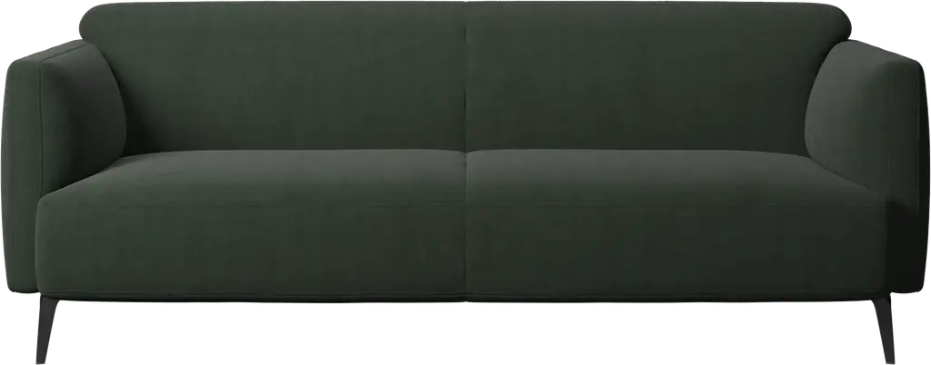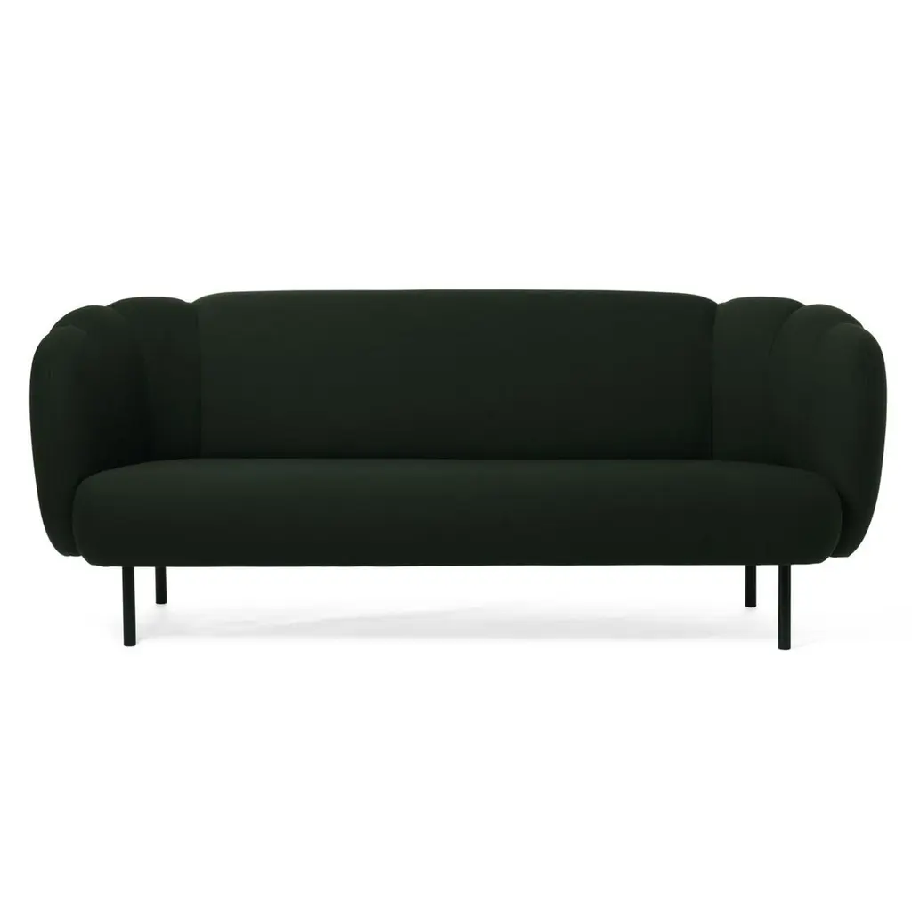 Caper 3 seater with stitches forest green by Warm NordicDimensions: D 200 x W 84 x H 80 cmMaterial: Textile upholstery, Wooden frame, Powder coated black steel legs.Weight: 55.5 kgAlso available in different colours and finishes.An elegant sofa with an organic design inspired by the puffed sleeves and layered designs of haute couture. Its soft lines and chic details make the Cape sofa a natural focal point, preferably in the company of the armchair in the same range. Both items of furniture are available with or without visible stitching. The sofa looks just as elegant in a modern building as in an old-fashioned luxury flat and has a light look by virtue of its slender metal legs. To achieve aesthetic perfection the Cape range is covered with exclusive furnishing fabrics, including 'Hero', whose soft, almost felt-like surface complements the sofas organic shape, and which is designed by Patricia Urquiola.Warm Nordic is an ambitious design brand anchored in Nordic design history and with a timeless, aesthetic style that inspires you to appreciate the little things in life. The company is the result of several years’ intense work on developing a new design brand with design history, quality and personality at its core. Warm Nordic boasts a colourful and charming universe of furniture, lamps and accessories full of personality. Our designs encapsulate the Nordic spirit, which in its essence is timeless, inclusive and warm.